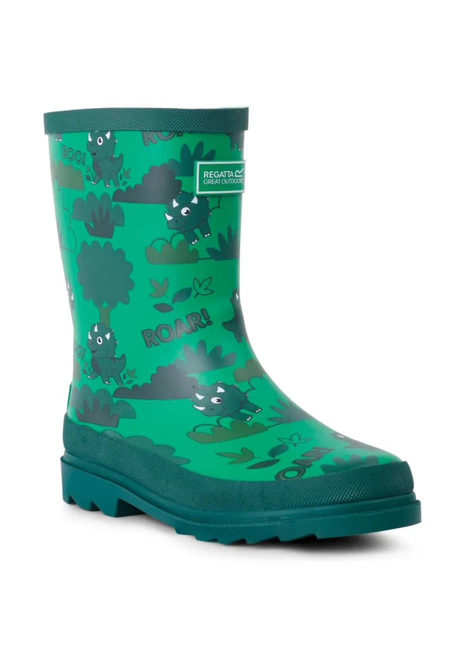 Regatta Stompy the Dinosaur Green Kids' Mudplay Junior II Waterproof Wellies