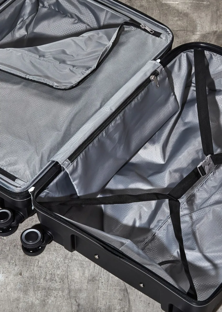 The interior has luxurious soft touch full lining and a mesh divider section. The design also features a convenient zipped inside pocket and elasticated packing straps to keep your clothes securely in place.