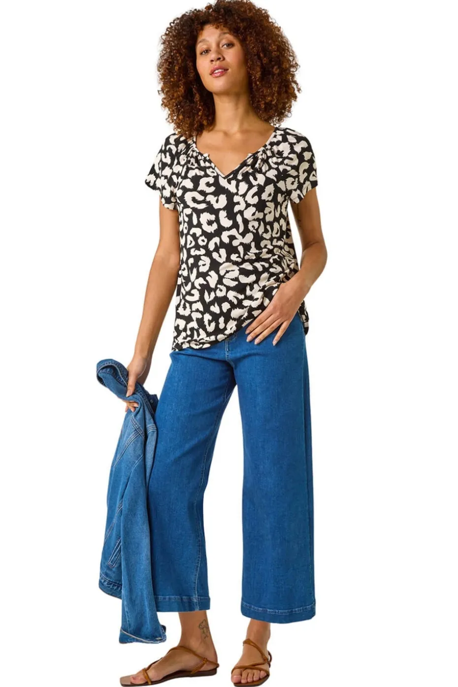 Be the first to review “Roman Black Animal Print V Neck Stretch Top” Cancel reply