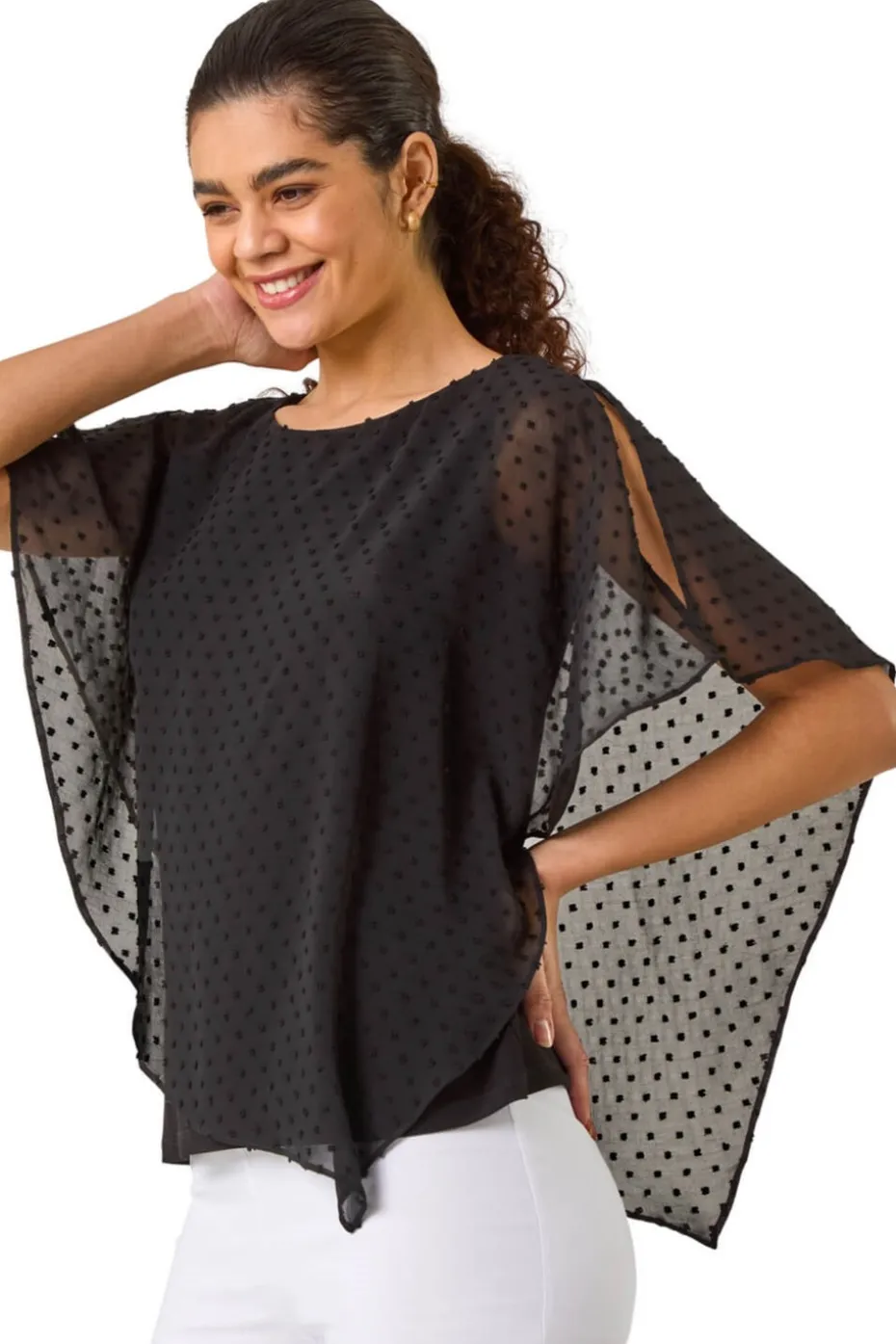Be the first to review “Roman Black Asymmetric Dobby Overlay Top” Cancel reply