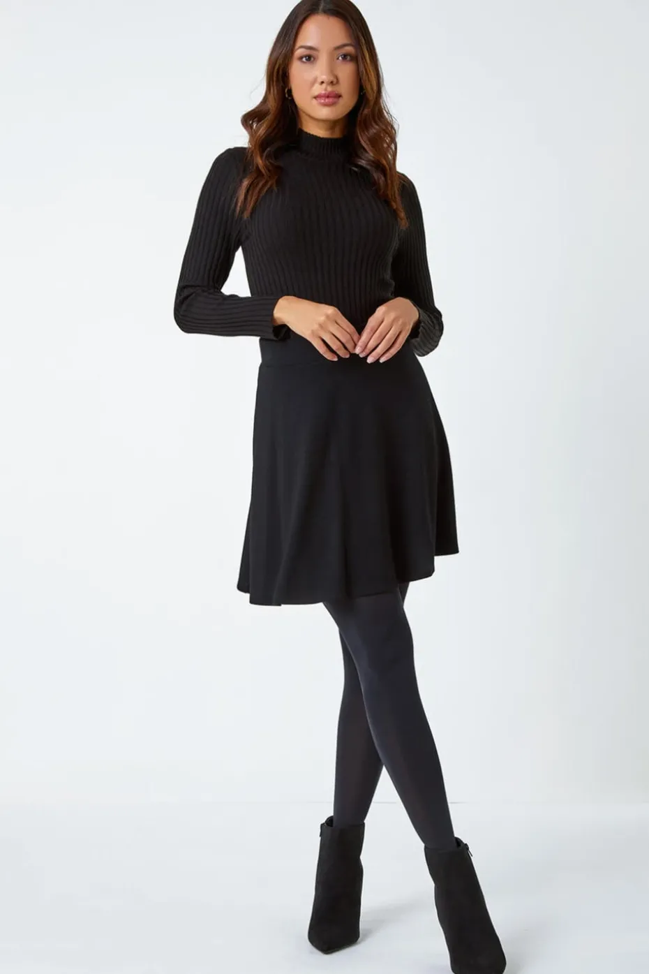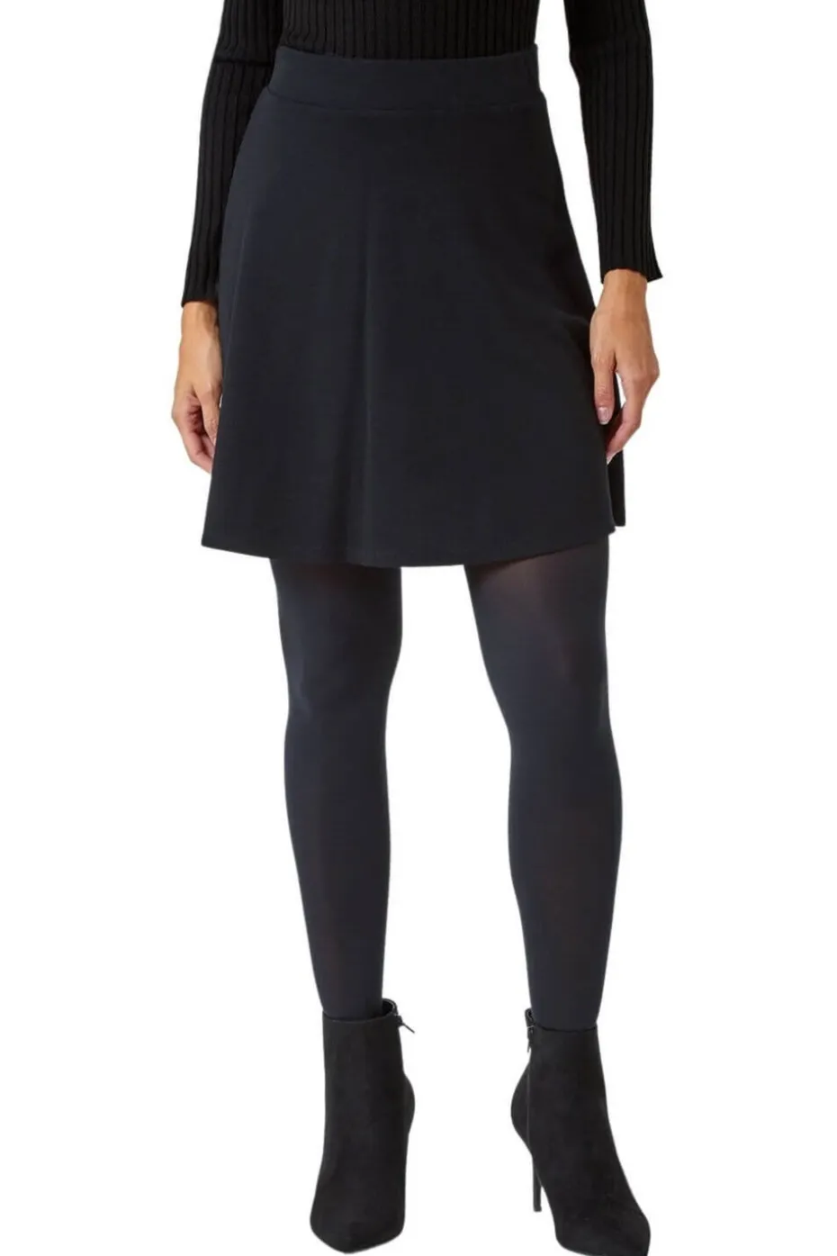 Pull On Stretch Skater Skirt from Roman. Looking for a versatile addition to your skirt collection? Check out this simple yet stylish skater skirt! Its playful energy makes it perfect for daytime wear, and the stretch jersey material and elasticated waist ensures a comfortable and easy pull-on fit. Plus, it’s easy to mix and match with other pieces in your wardrobe for versatile day to night outfits. For a fun and stylish daytime look, try pairing it with some cosy knitwear and chunky boots or smarten up for work with a blazer jacket.