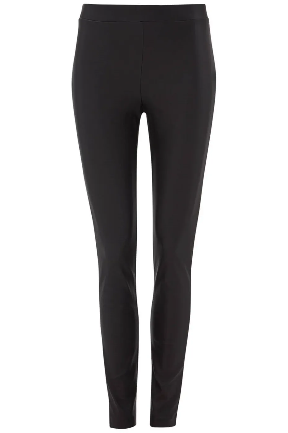 Faux Leather Pull On Elastic Waist Trousers from Roman. Give your look a fierce touch with these trousers. Featuring a black faux leather fabric and a slim fit, these pull-on stretch trousers are perfect with strappy heels and a cute top.