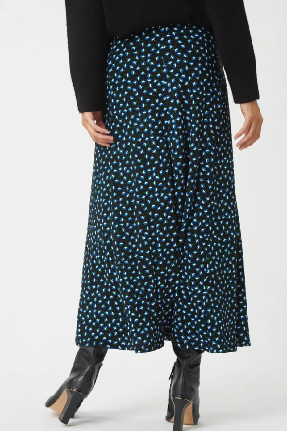 Floral Print Midi Stretch Skirt from Roman. Combining timeless floral prints with classic shapes, this ditsy floral print skirt is a real seasonal staple. This style is easy to pull on with its elasticated waistband and flattering fit and flare design. Cut from a stretch jersey fabric, this midi length number can be dressed up for any occasion. Add a bodysuit ad leather jacket for an evening out or pair with chunky knitwear and boots for chic Autumn style!
