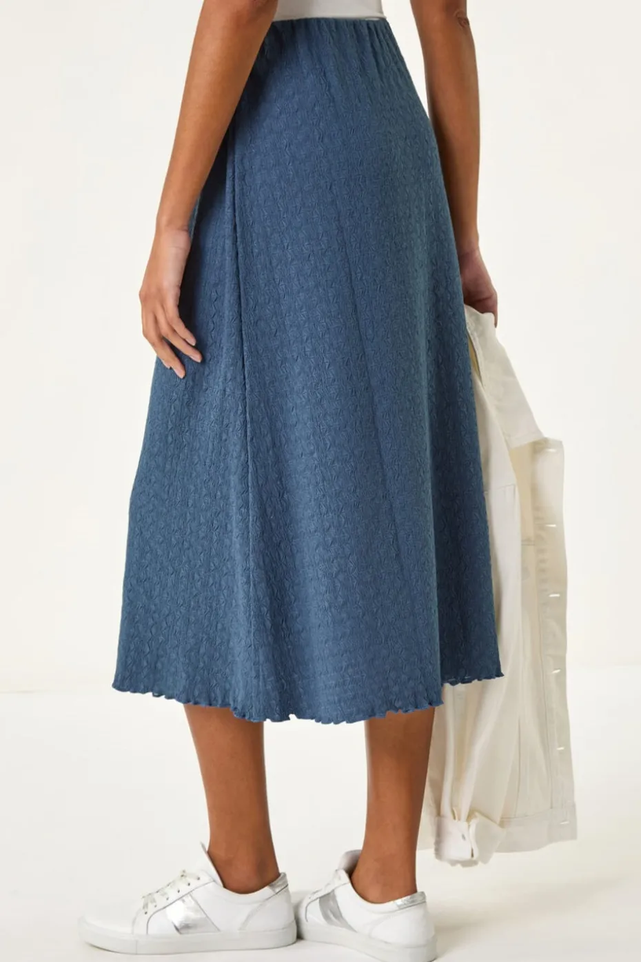 Be the first to review “Roman Blue Textured Fluted Hem Midi Skirt” Cancel reply