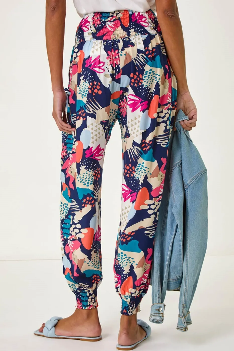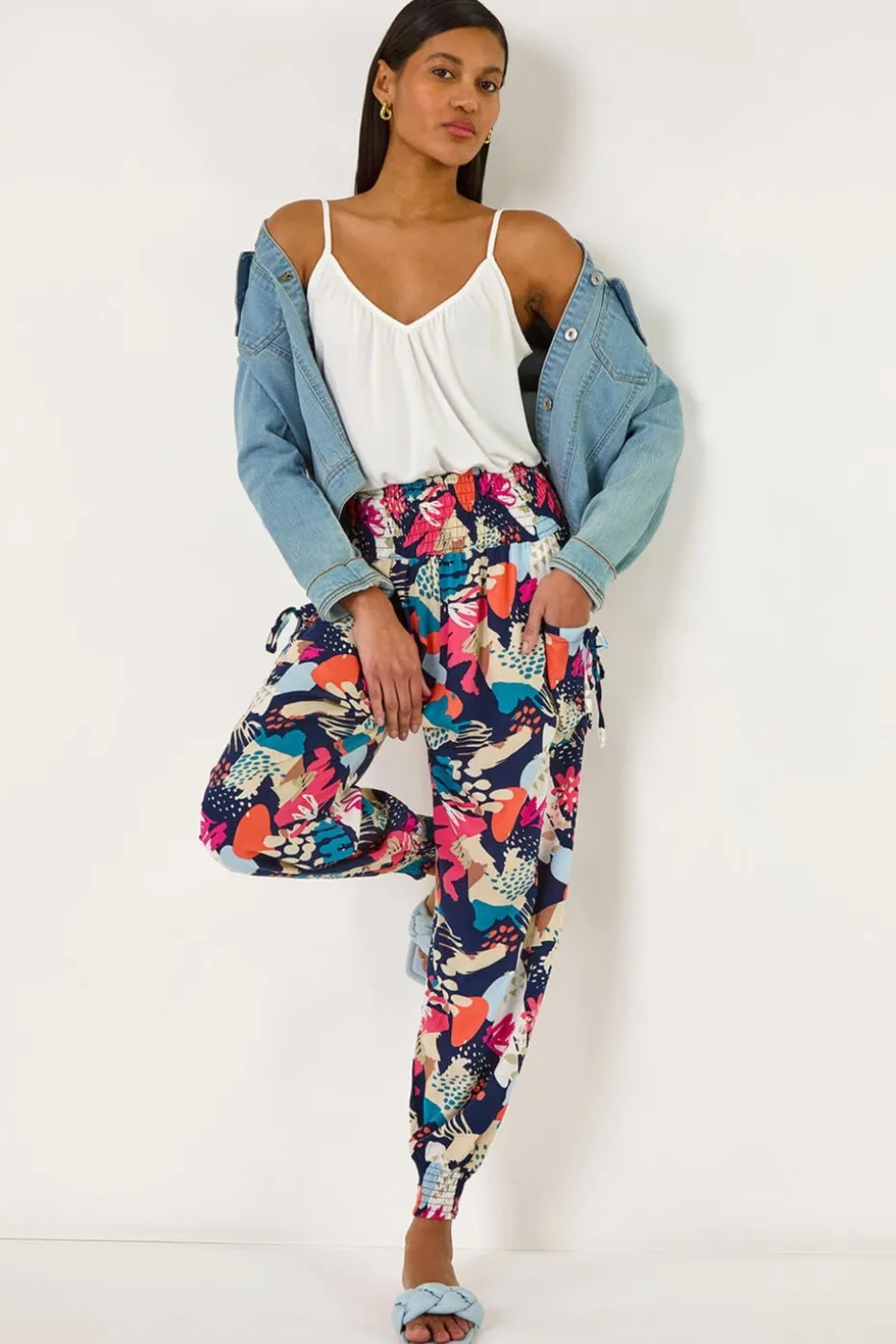 Abstract Tie Pocket Trousers from Roman. Elevate your Spring/Summer wardrobe with these chic abstract print trousers. The all-over print adds a touch of fun to your look, while the tie pocket detail brings a trendy twist. Pair these stylish trousers with a cami top and sandals for a laid-back yet fashionable ensemble that’s perfect for any sunny day out!