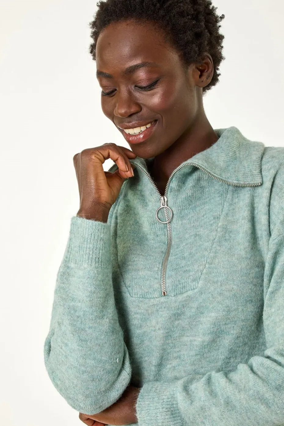 Collar Zip Neck Knit Jumper from Roman. Keep it cosy and stylish with this classic collar zip neck jumper. Designed with long sleeves and a soft hand touch, this jumper is perfect for keeping you warm throughout the season. The collar zip neck adds a touch of sophistication, making it a versatile piece to pair with your favourite jeans and ankle boots for a chic and effortless look.