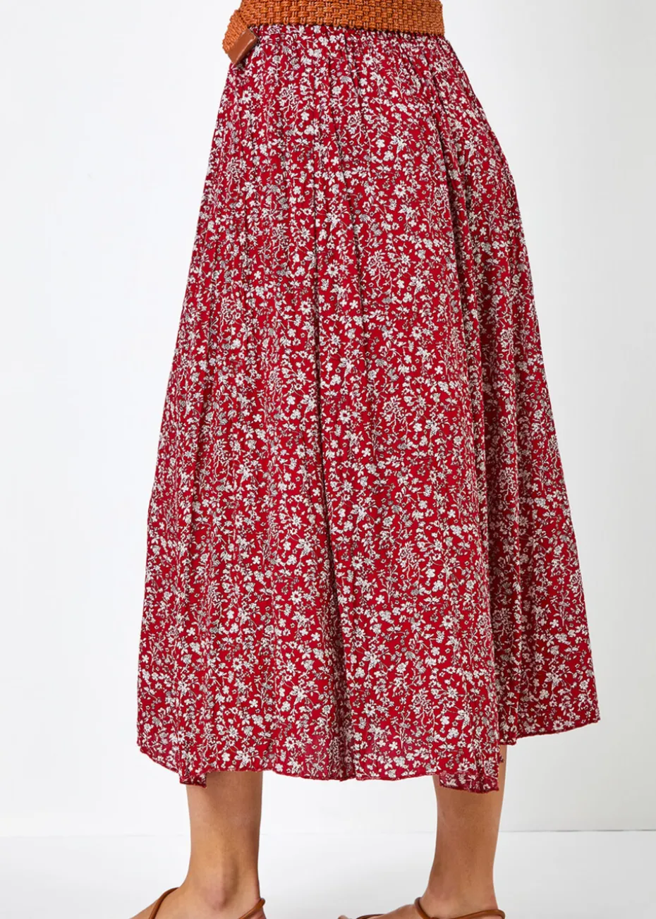 Ditsy Floral Belted Elastic Waist Midi Skirt from Roman. Welcome your new go to midi skirt for this summer season. This ditsy floral a-line number offers an elasticated waist with an additional woven belt. Perfect to throw on whilst on holiday with a simple plain tee and some sandals.