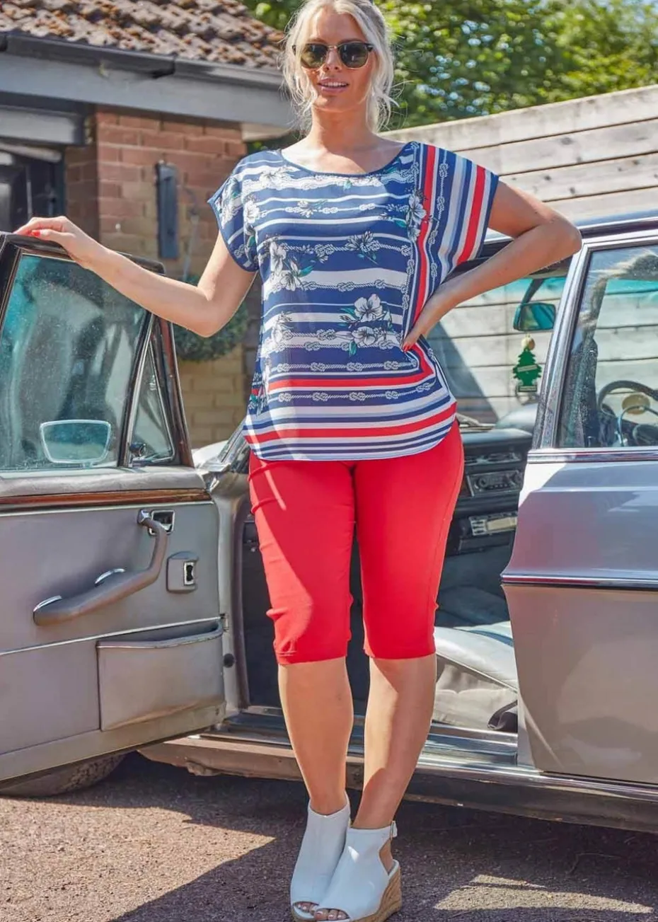 Elastic Waist Knee Length Stretch Shorts from Roman. These supple, stretch bengaline shorts are a certain Summer staple. The perfect combination of comfort and style, these elasticated waist pull on shorts are perfect for your warm weather wardrobe. Essential for holidays, these shorts are crafted from a comfy stretch, bengaline fabric, perfect for city breaks and beach days alike. Team with a lightweight tops and sandals for effortless Summer style!