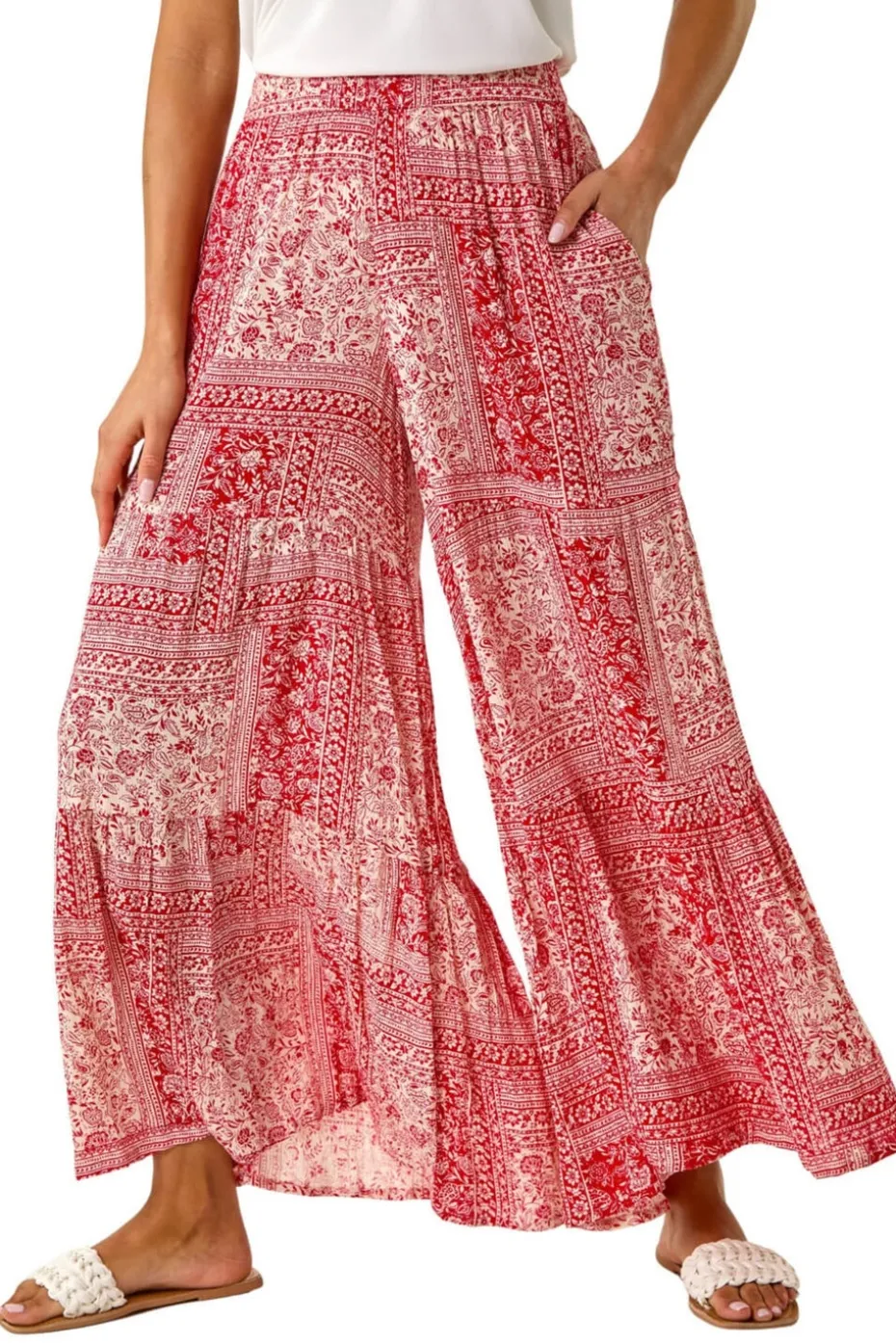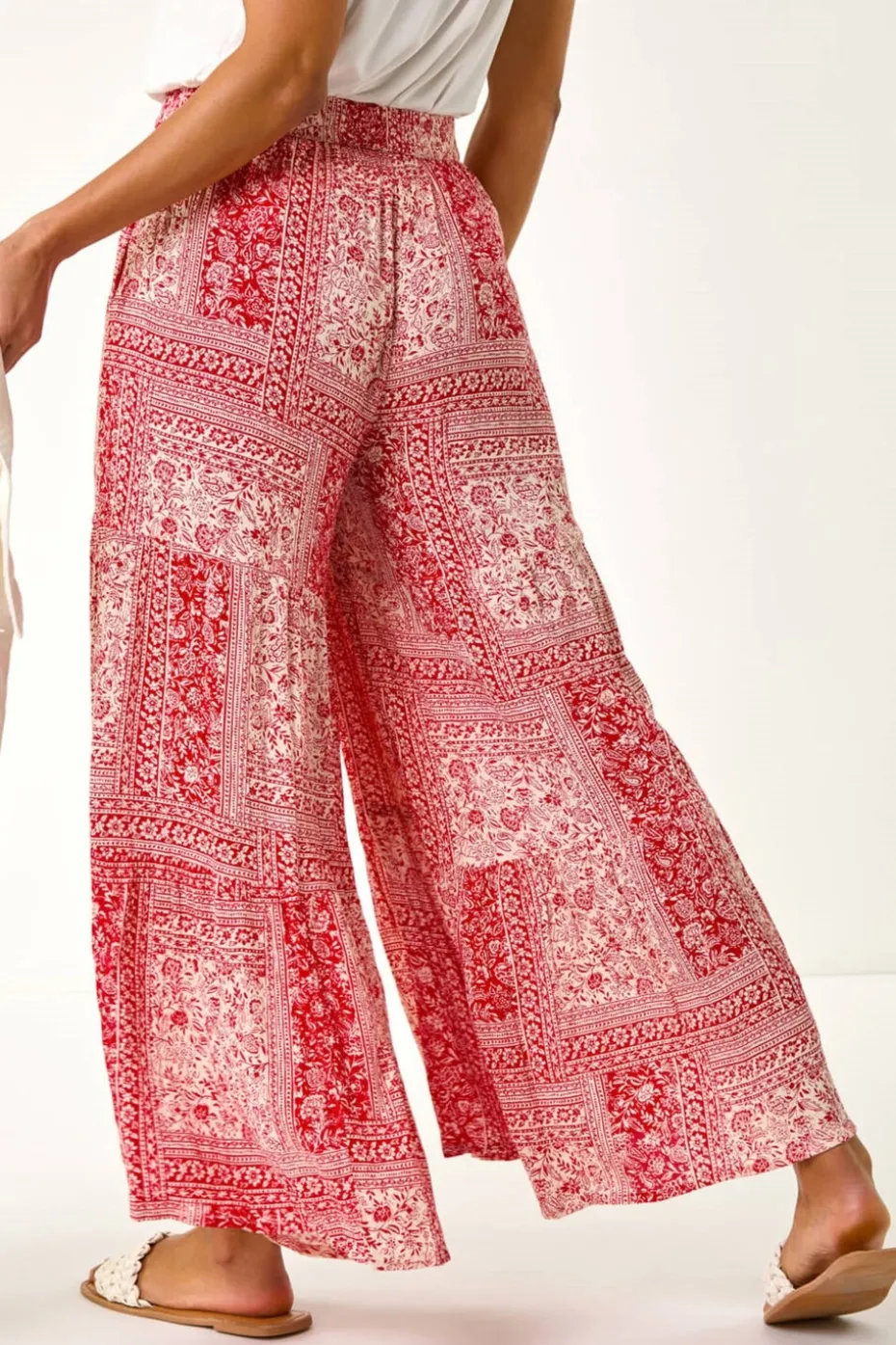 Tile Tiered Palazzo Trouser from Roman. Get ready to make a statement this Spring/Summer with these stunning tile tiered palazzo trousers. Featuring a beautiful multi-tile print, these palazzo trousers are the perfect combination of style and comfort. Designed with a flattering tiered silhouette and an elasticated waist for the perfect fit. The vibrant red and natural tile print adds a pop of colour to your wardrobe. Pair with a chic cami top and sandals for a stylish day-to-night look that’s sure to turn heads!