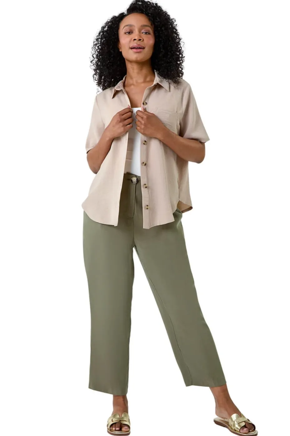 Petite Button Up Pocket Shirt from Roman. Elevate your casual collection with our Petite button-through shirt. Cut from a floaty woven fabric, this lightweight shirt features a classic collar, short sleeve and a playful patch pocket at the bust. It has a full button through front that’s detailed with feminine tortoise shell buttons to fasten. Wear with jeans and a cami for a versatile look or dress it down for holidays with breezy linen trousers and sandals on the beach!