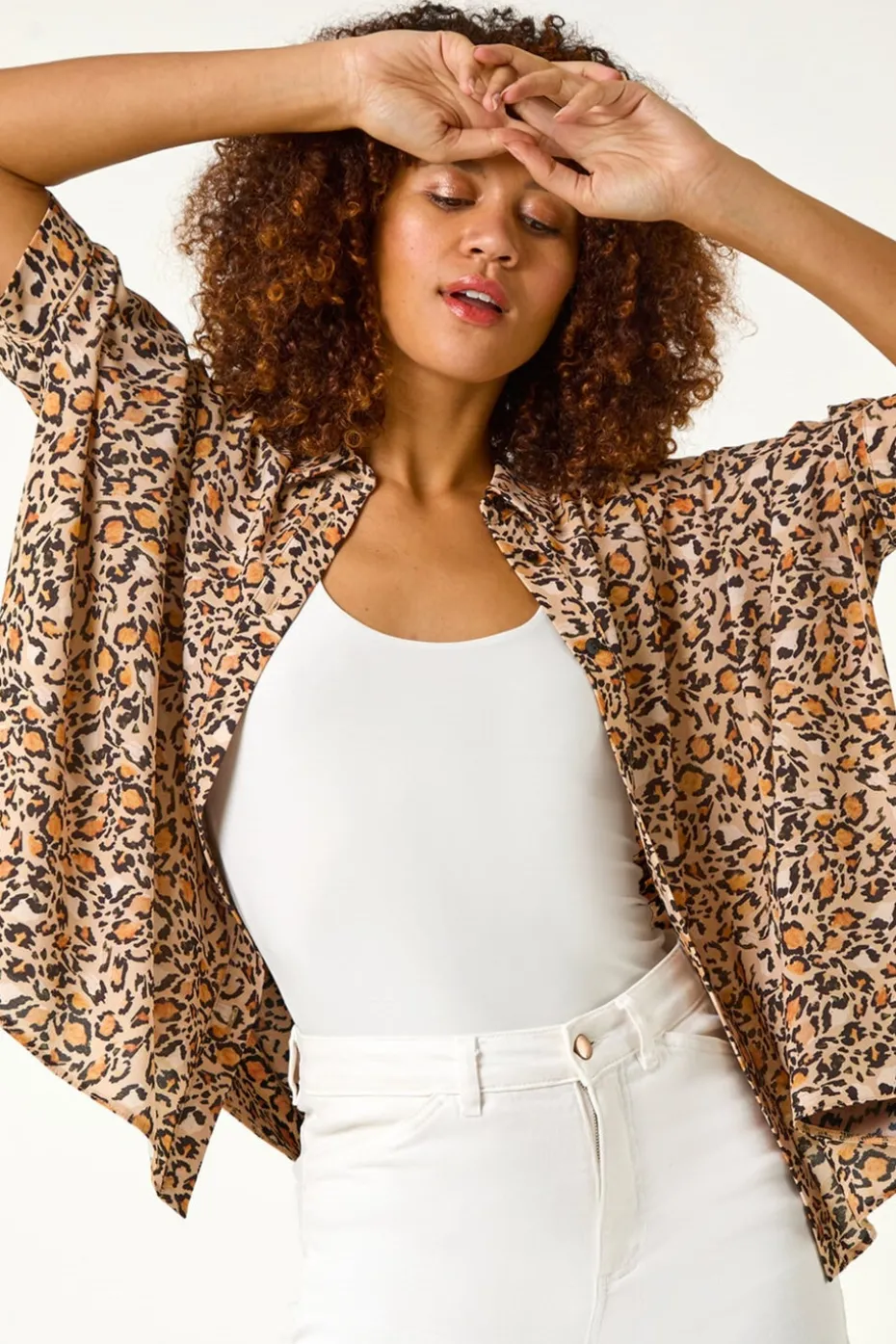 Be the first to review “Roman Tan Animal Print Relaxed Blouse” Cancel reply