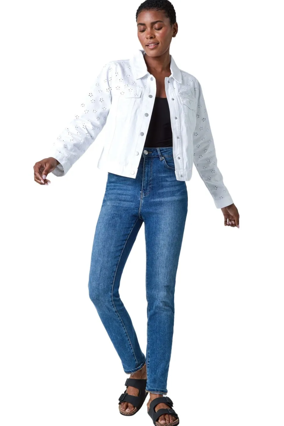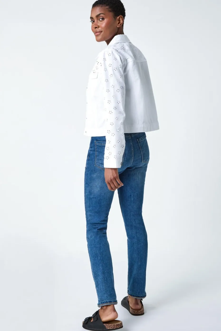 Roman White Cotton Blend Broderie Sleeve Jacket