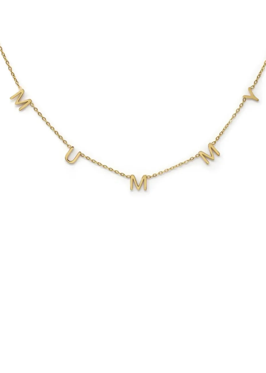 Give the gift of love this Mothers Day with this beautiful Mummy Necklace in Yellow Gold. Crafted from Stainless Steel, meaning it is completely anti tarnish, anti fade waterproof. Product Information: Chain Length: 18 inches Material: Stainless Steel Colour: Yellow Gold