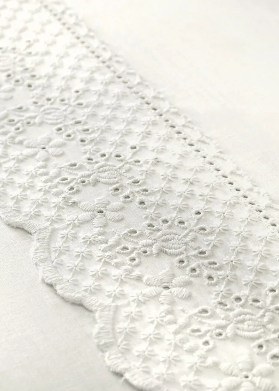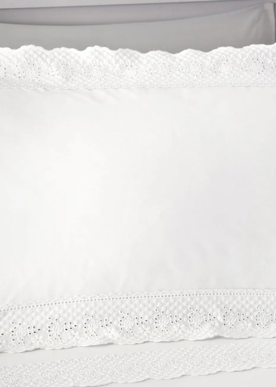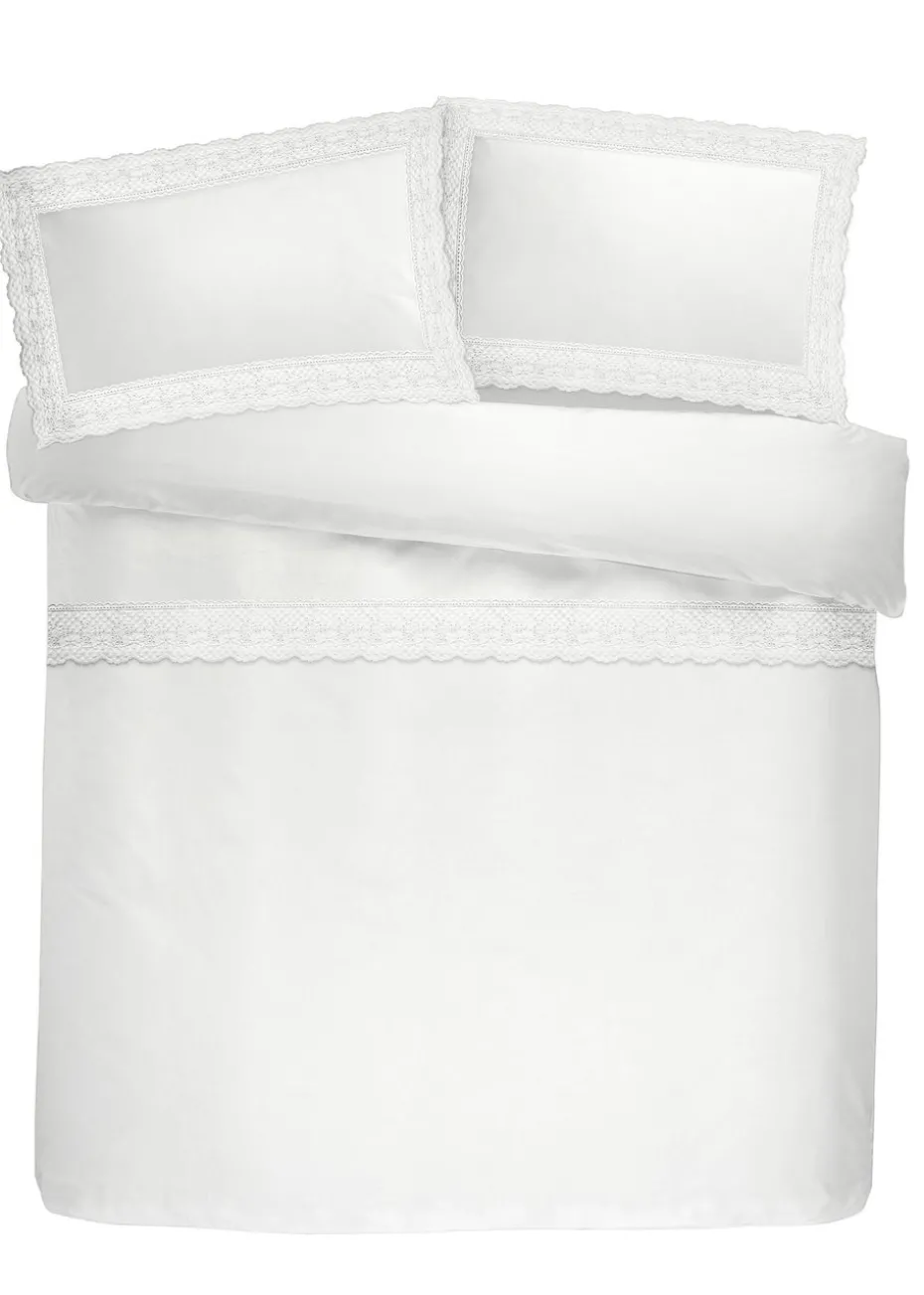 With an exquisite scallop lace trim this design will add a romantic look to your bedroom. Set includes matching pillowcase(s).