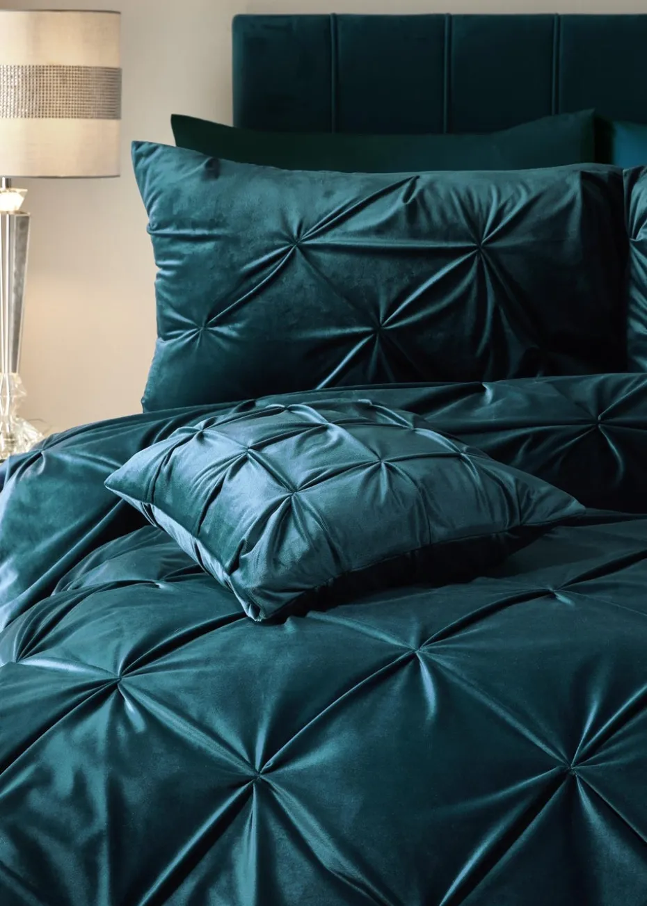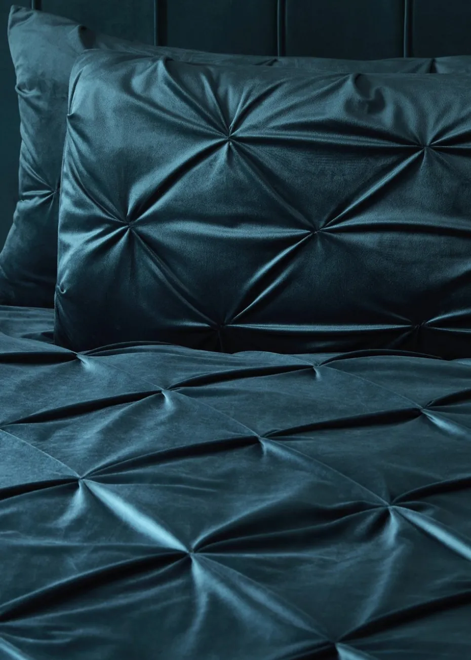 Sumptuously soft velvet dyed in this season’s must have colour palette is then pinch pleated to create this stunning new duvet cover set that will enhance any modern boudoir