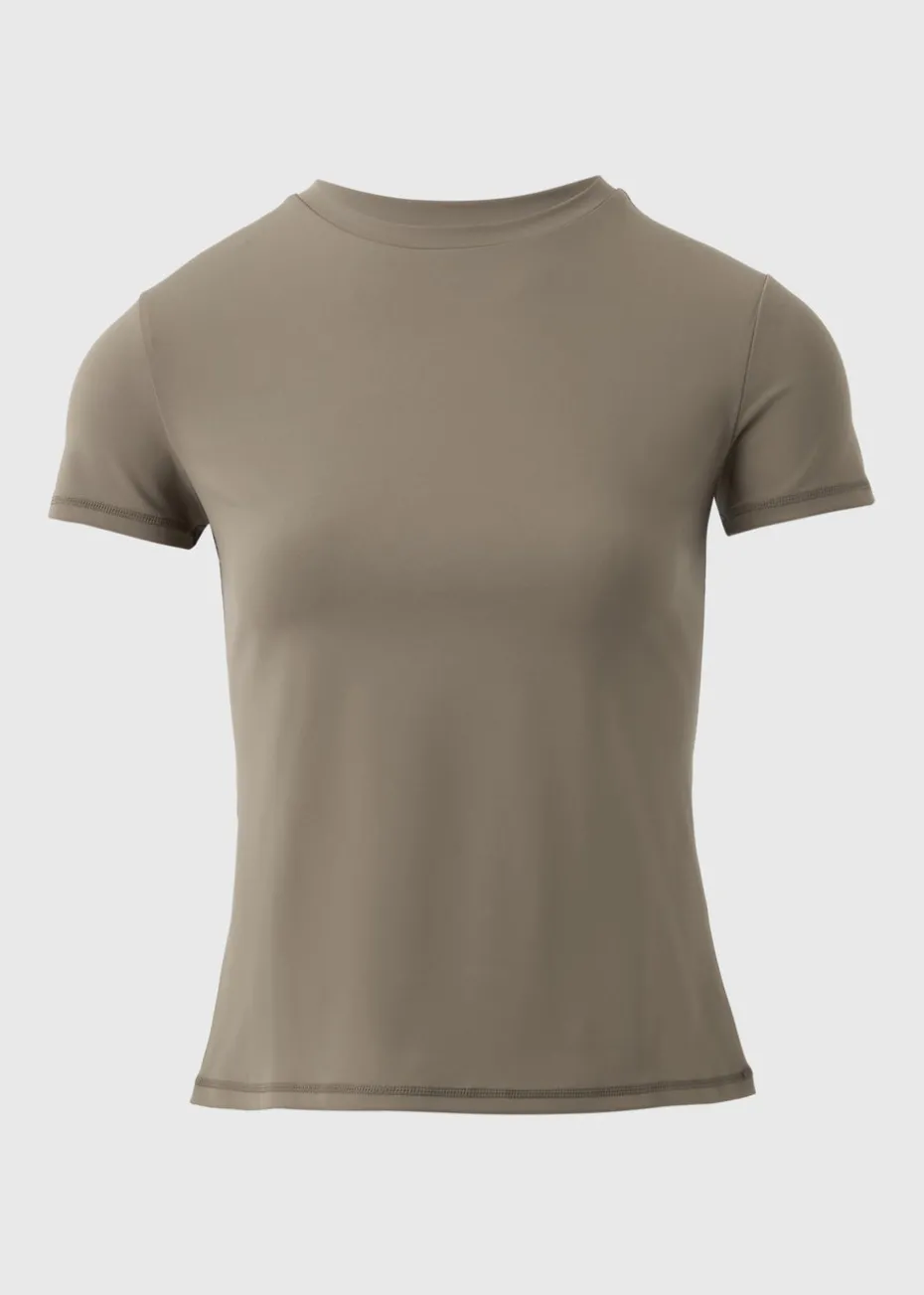 Our fitted short sleeve Souluxe top is a wardrobe staple that exudes timeless elegance. Crafted from a soft, smooth stretch fabric, this fitted T-shirt offers supreme comfort all day long. Its classic crew neckline and short sleeves strike a balance between style and versatility, making it a go-to choice for various occasions.