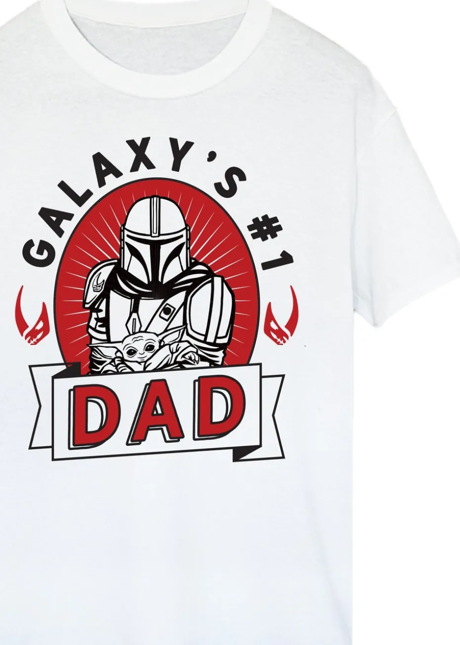 Star Wars The Mandalorian Dad Galaxy Men White Graphic T-Shirt