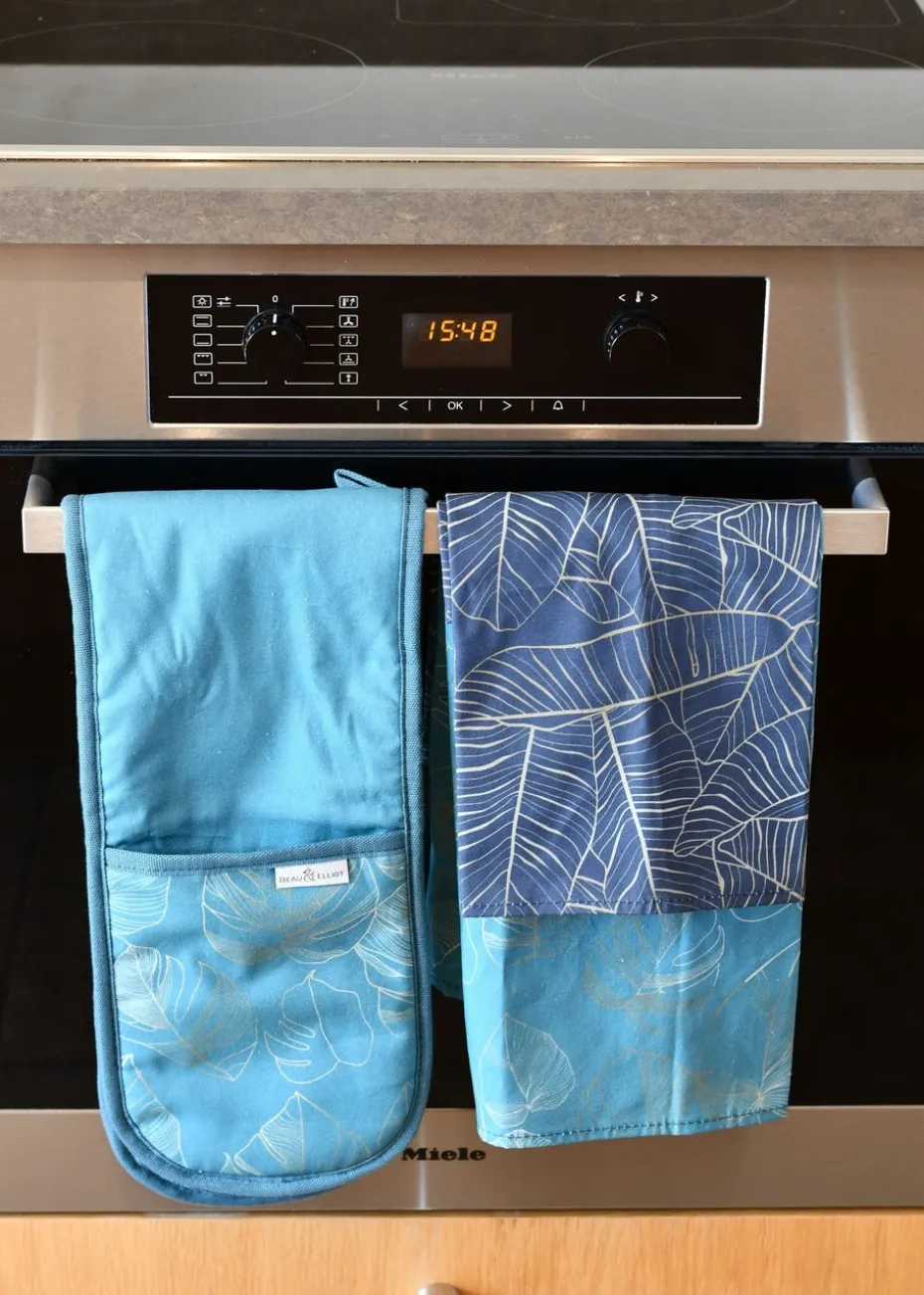 With two sage and midnight blue leaf print designs, these tea towels are sure to add a touch of nature to your home. Made from 100% cotton, these towels are durable, absorbent, and easy to clean. Each towel features a handy hanging loop, so you can keep them within easy reach. Use them to dry dishes, wipe up spills, or even as a makeshift oven mitt in a pinch! And when they get dirty, just toss them in the washing machine.
