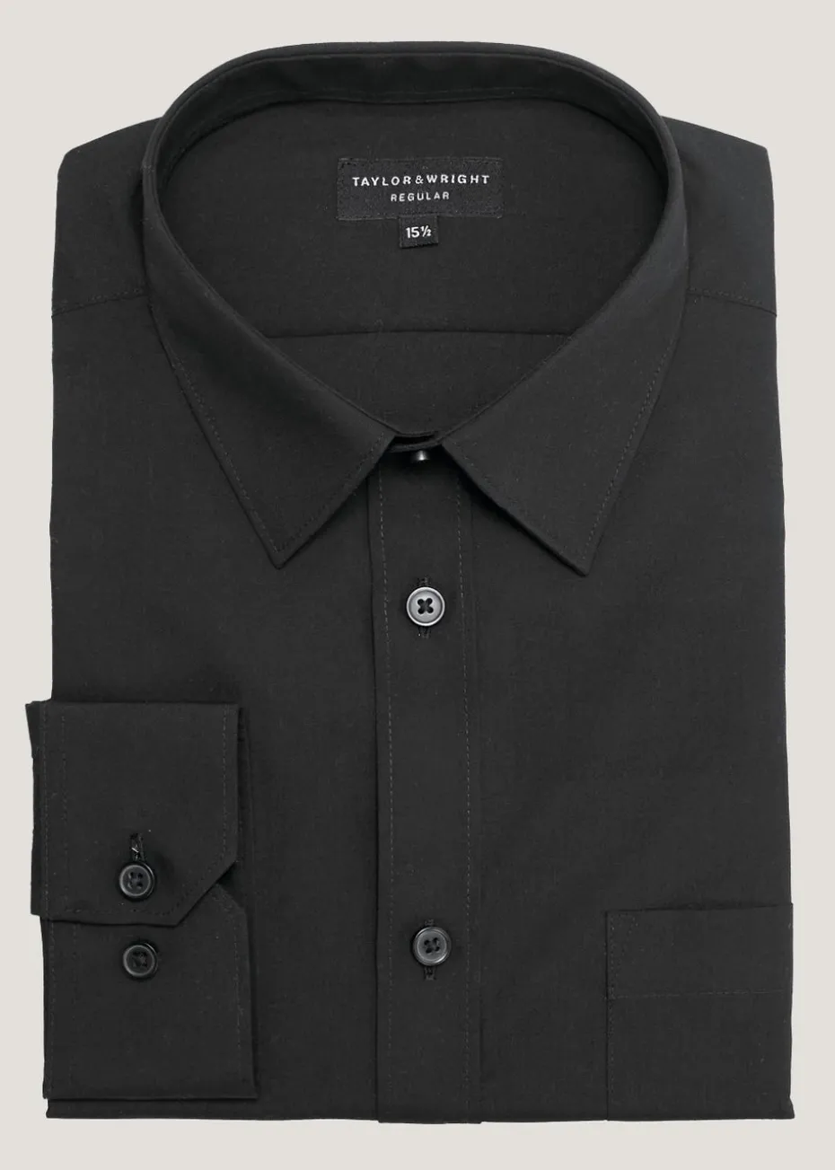 A must-have in any modern gent’s wardrobe, this easy care shirt by Taylor & Wright is a versatile staple. Styled in black, the shirt is crafted from a polycotton blend that combines the comfort of cotton with the durability of polyester. Finished with cuffs, a conventional placket, and a smart forward point collar, this shirt is as well suited to everyday office wear as it is to sharp suits. Model Height: 6ft 1/2.