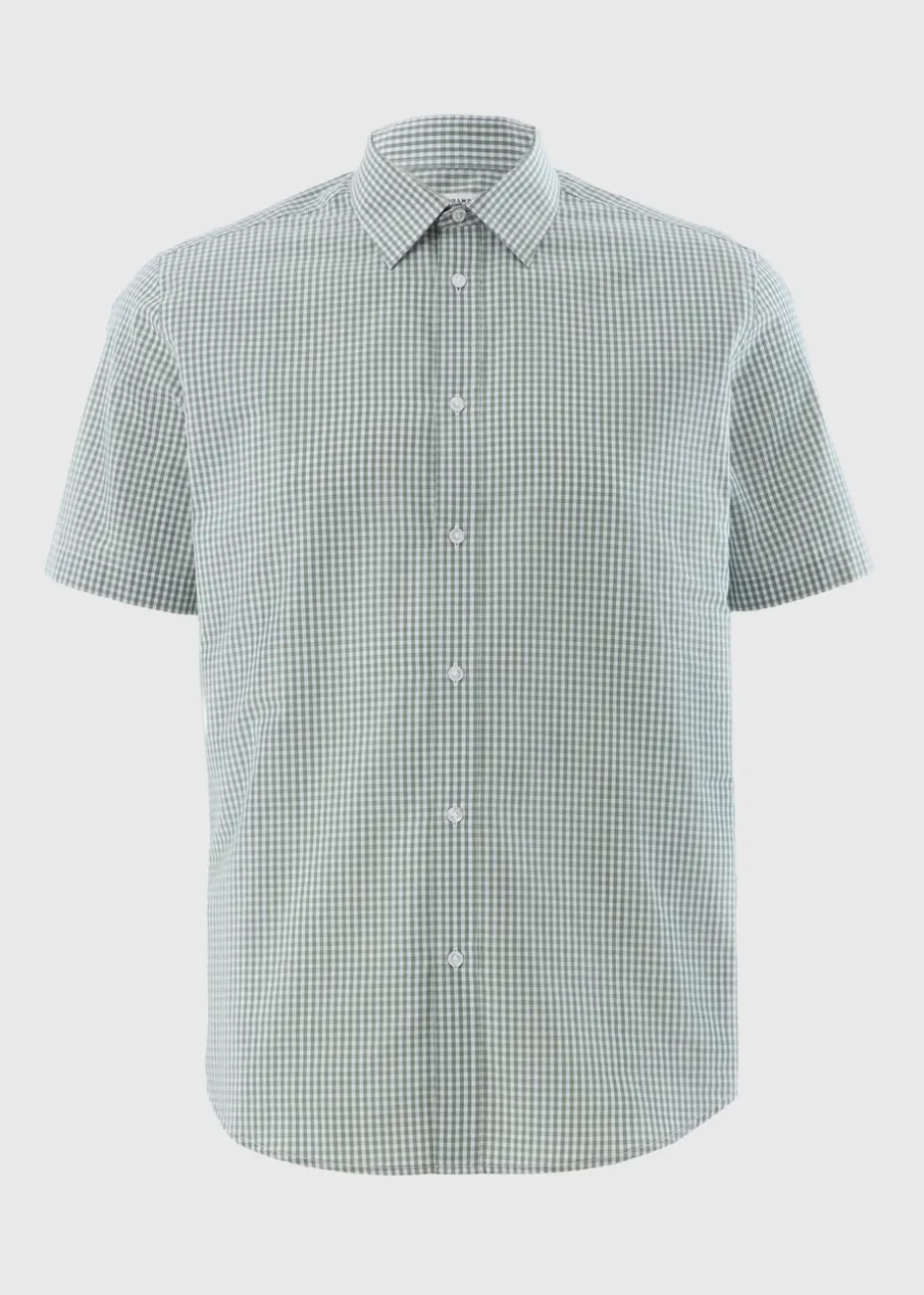 A must-have in any modern gent’s wardrobe, this green check shirt by Taylor & Wright is a versatile staple. Cut to a flattering regular fit and finished with cool short sleeves, the shirt is crafted from a polycotton blend that combines the strength of polyester with the comfort of cotton. Finished with buttoned cuffs, a conventional placket, and a smart forward point collar, this shirt is as well suited to days in the office as it is to formal occasion wear.
