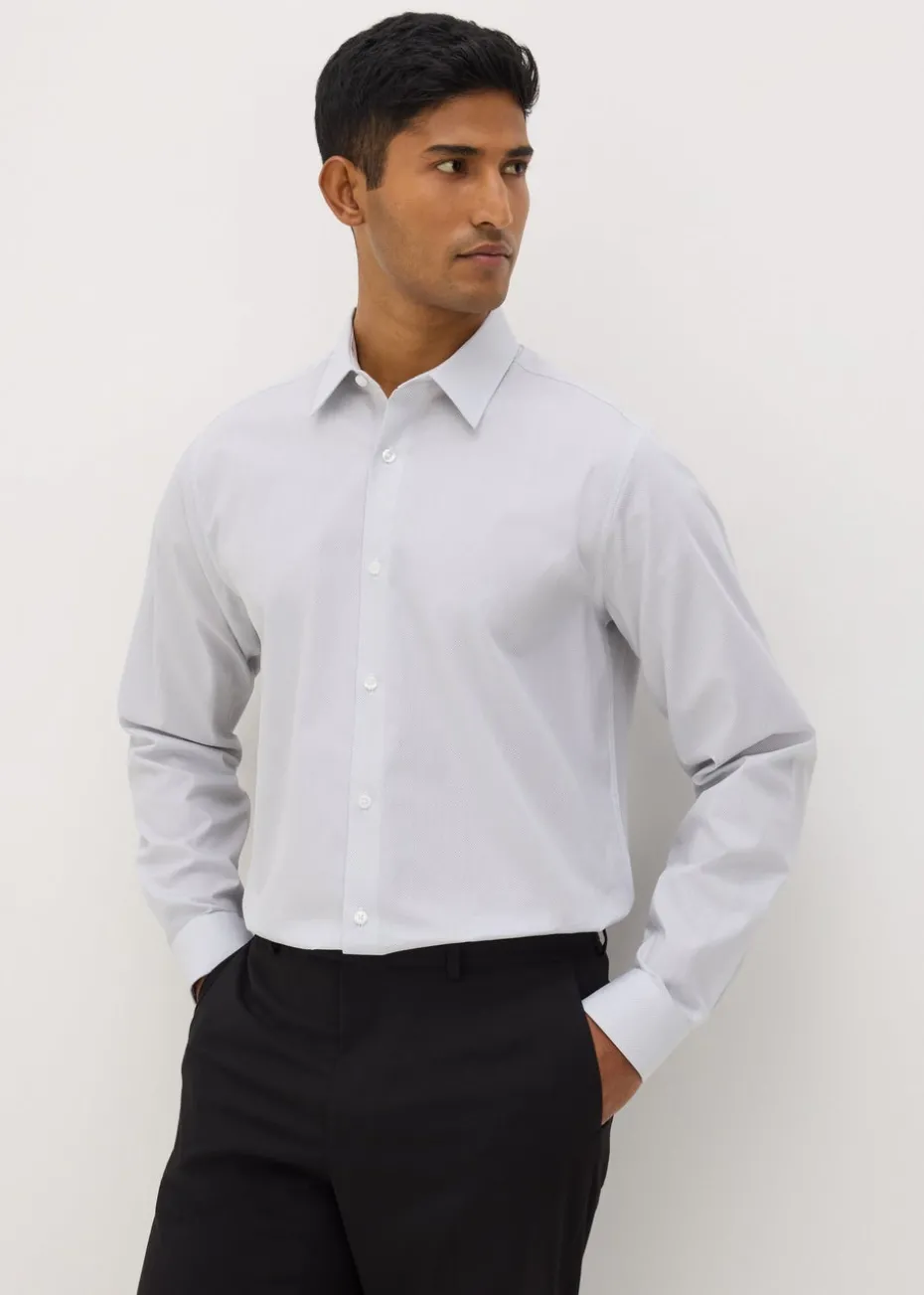 Upgrade your smart wardrobe with the Taylor & Wright Grey Herringbone Regular Fit Shirt, designed for sophisticated style and everyday comfort. Featuring a subtle herringbone weave, this shirt adds a touch of texture and elegance, making it perfect for formal occasions, office wear, or smart-casual dressing.