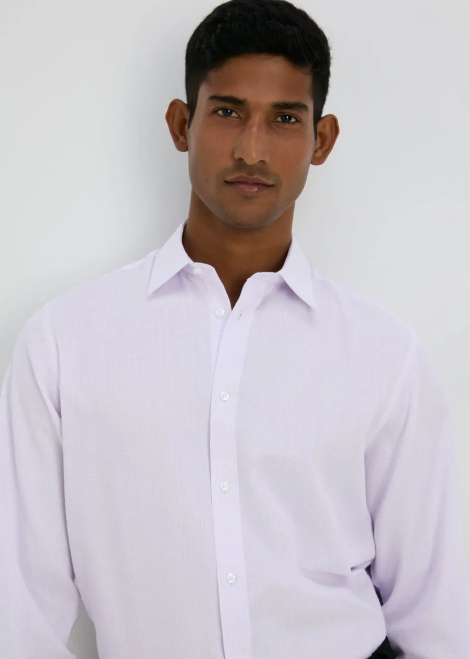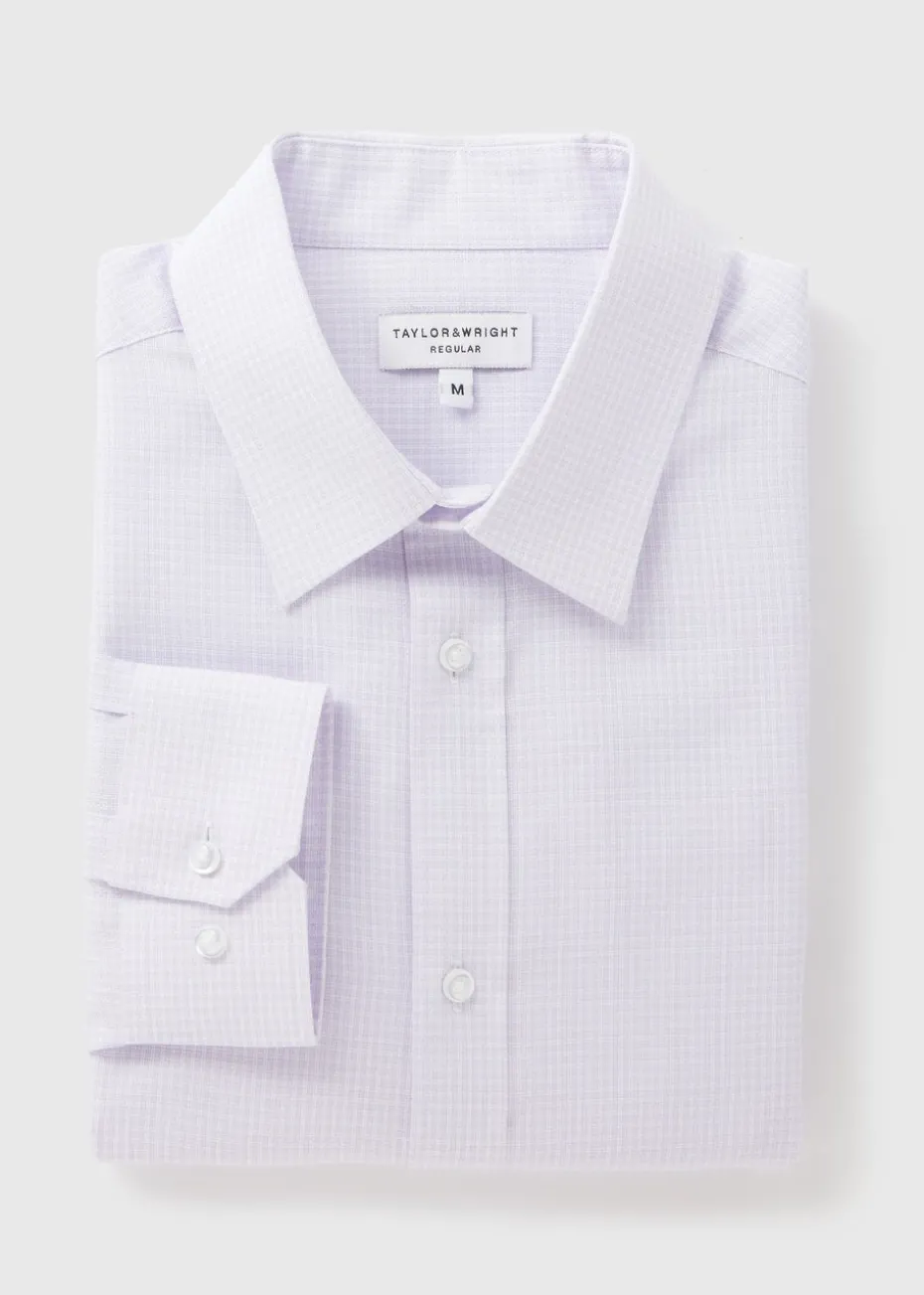 Elevate your wardrobe with the Taylor & Wright Lilac Check Regular Fit Shirt, a perfect blend of classic style and modern sophistication. This shirt features a subtle lilac colour, with a micro check pattern that adds texture and elegance to any outfit, making it ideal for both professional and casual settings. The regular fit provides a timeless silhouette that is flattering yet relaxed, allowing for easy movement. The shirt includes a classic button-down front, a pointed collar, and long sleeves with buttoned cuffs, offering a versatile style that can be dressed up or down. Layer under a lightweight sweater for a relaxed weekend style.