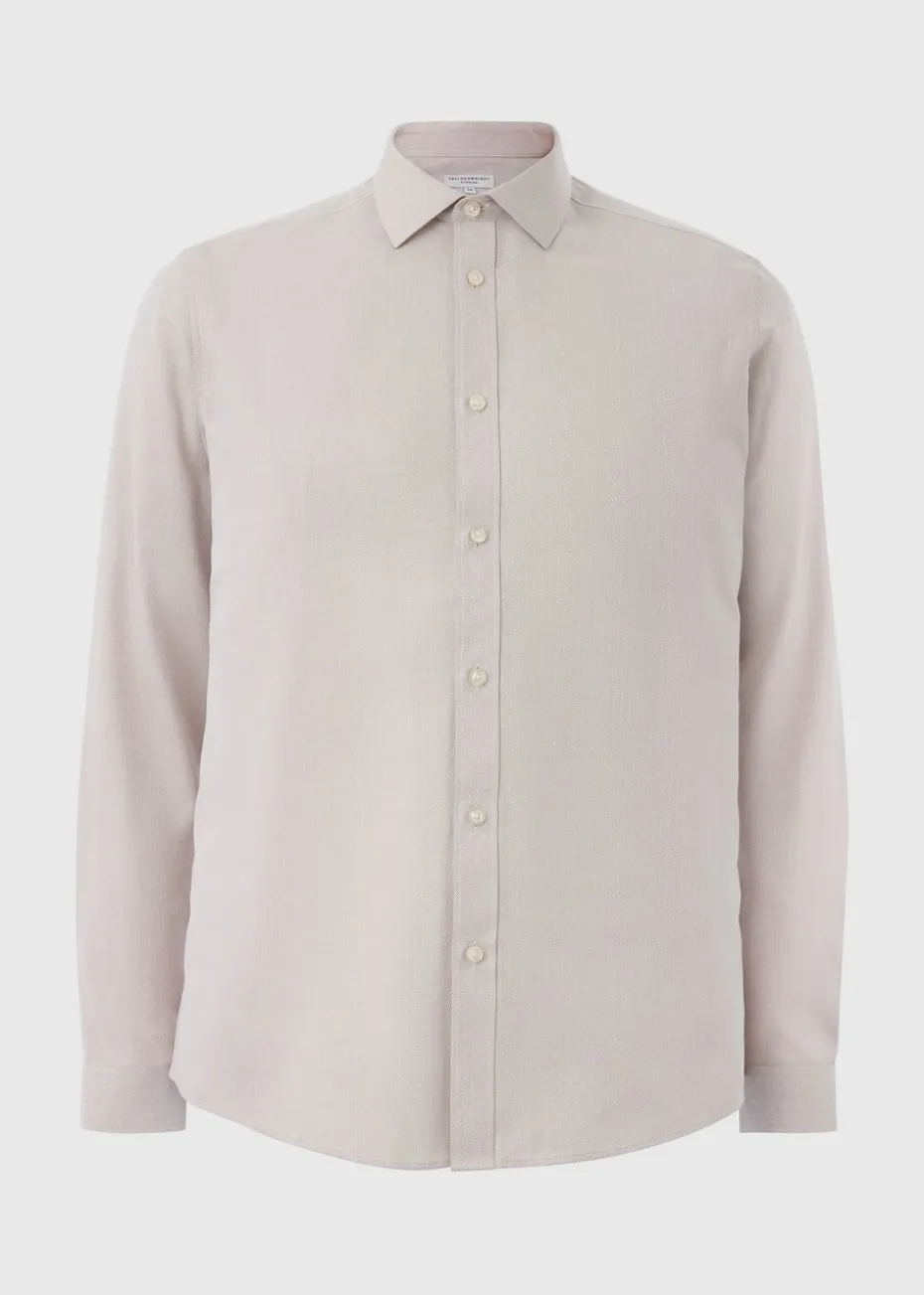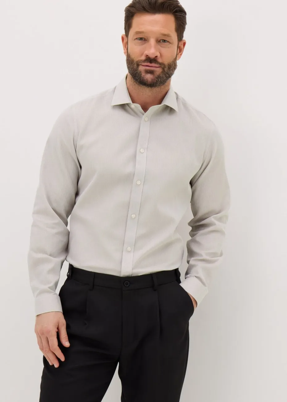 Upgrade your wardrobe with the refined Taylor & Wright Stone Dobby Regular Fit Shirt. This versatile piece is a perfect blend of sophistication and comfort, designed to elevate your style for any occasion. Elegant stone hue that complements a wide range of outfits, making it a wardrobe staple. Create a smart-casual outfit by pairing it with chinos, a lightweight knit sweater, and leather boots.