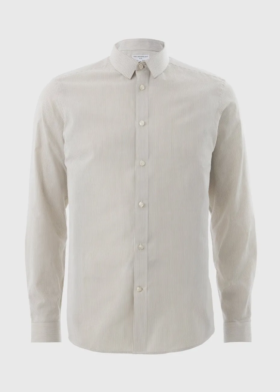 Upgrade your smart wardrobe with the Taylor & Wright Stone Stripe Slim Fit Shirt, a perfect blend of classic style and modern tailoring. Designed in a versatile stone hue with subtle stripes, this shirt offers a sleek slim fit for a refined and polished look. Ideal for office wear, formal occasions, or smart-casual styling.