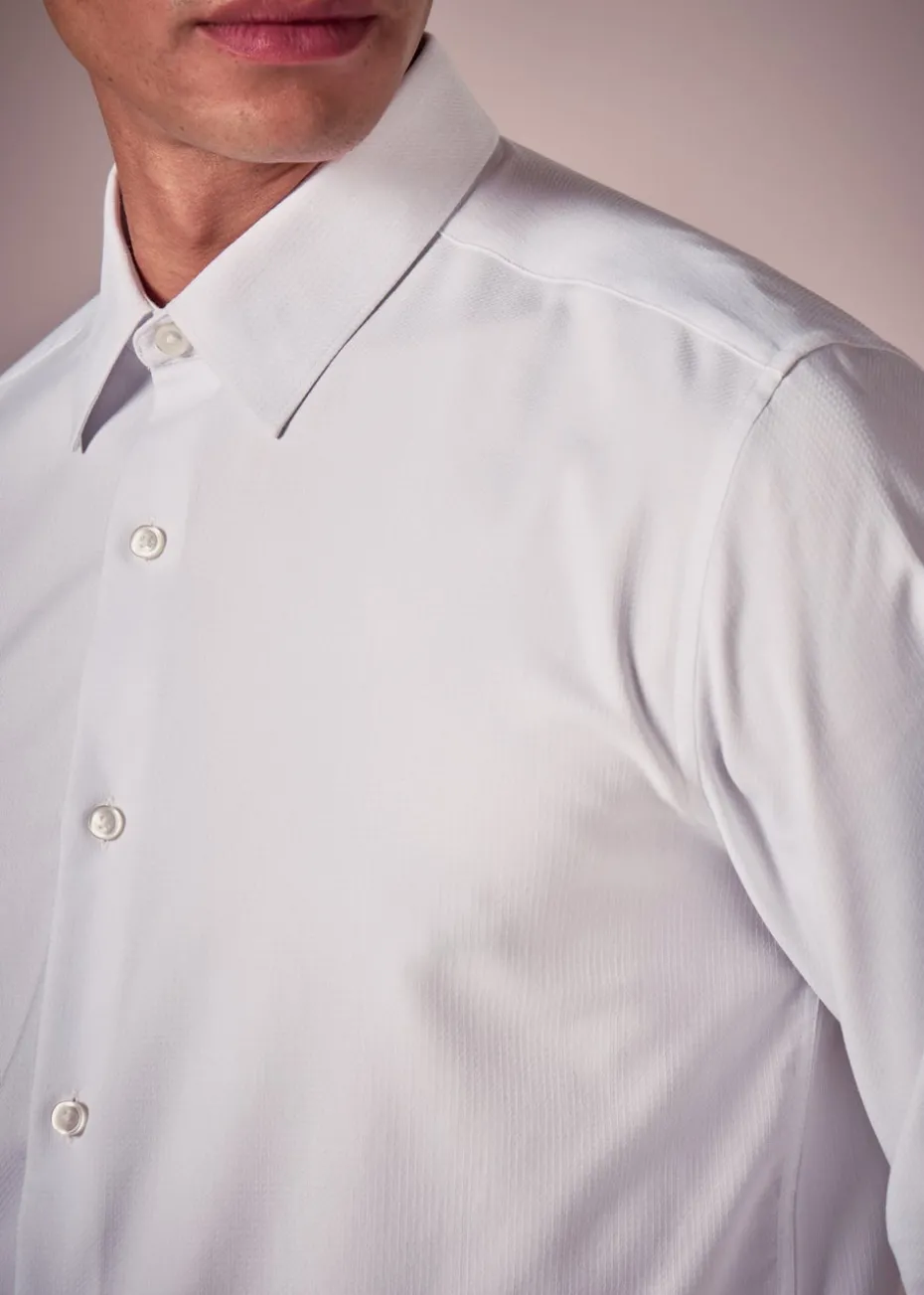 This long-sleeve shirt boasts a textured design, adding a subtle touch of refinement to your look. The regular fit ensures comfort, while the cotton stretch fabric provides ease of movement for a polished appearance. For a formal event, pair it with tailored trousers, a blazer, and a tie.