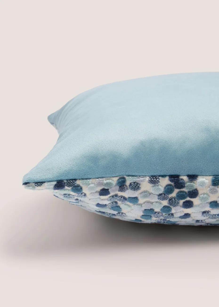 This comfortable cushion features a rich teal hue adorned with charming polka dots, creating a stylish and inviting accent for your home. With a size of 43x43cm, this cushion can be used anywhere from your bedroom to your sofa and bring a pop of colour.