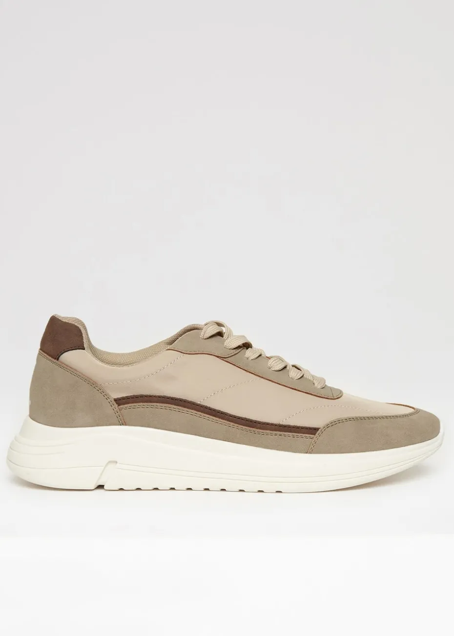Threadbare Beige Retro Panelled Court Trainers
