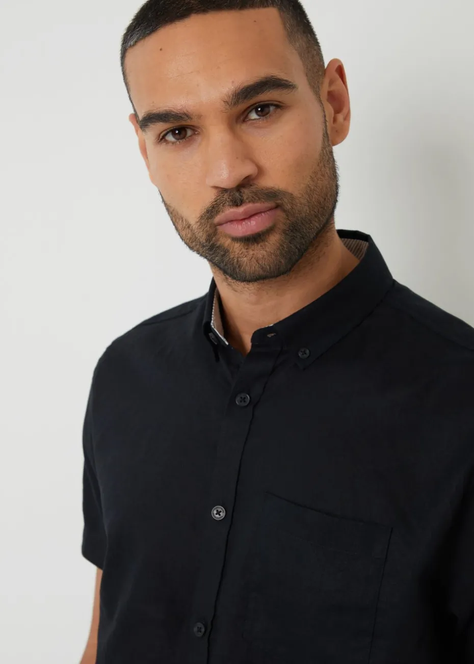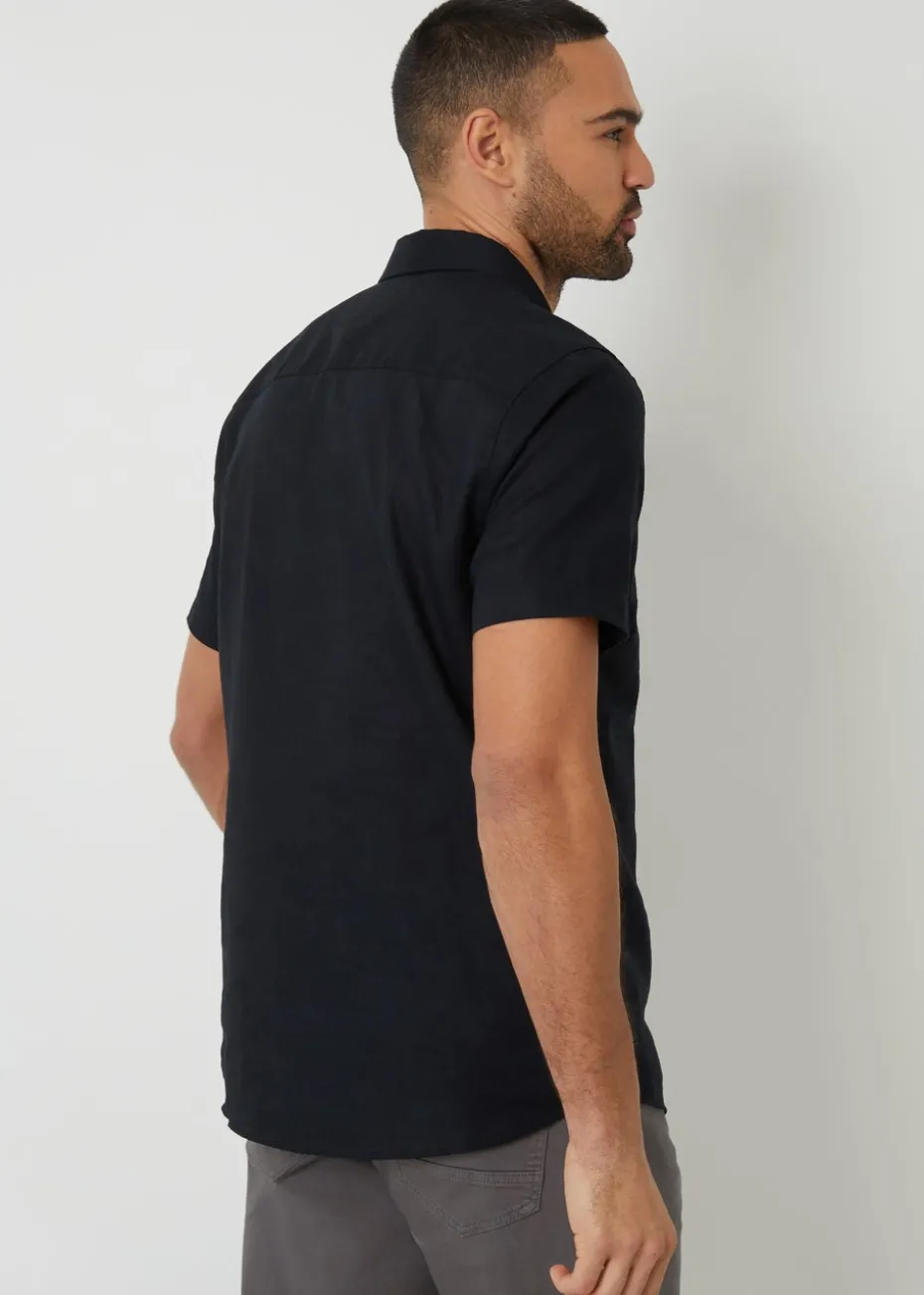 Threadbare Black Cotton Linen Blend Short Sleeve Shirt
