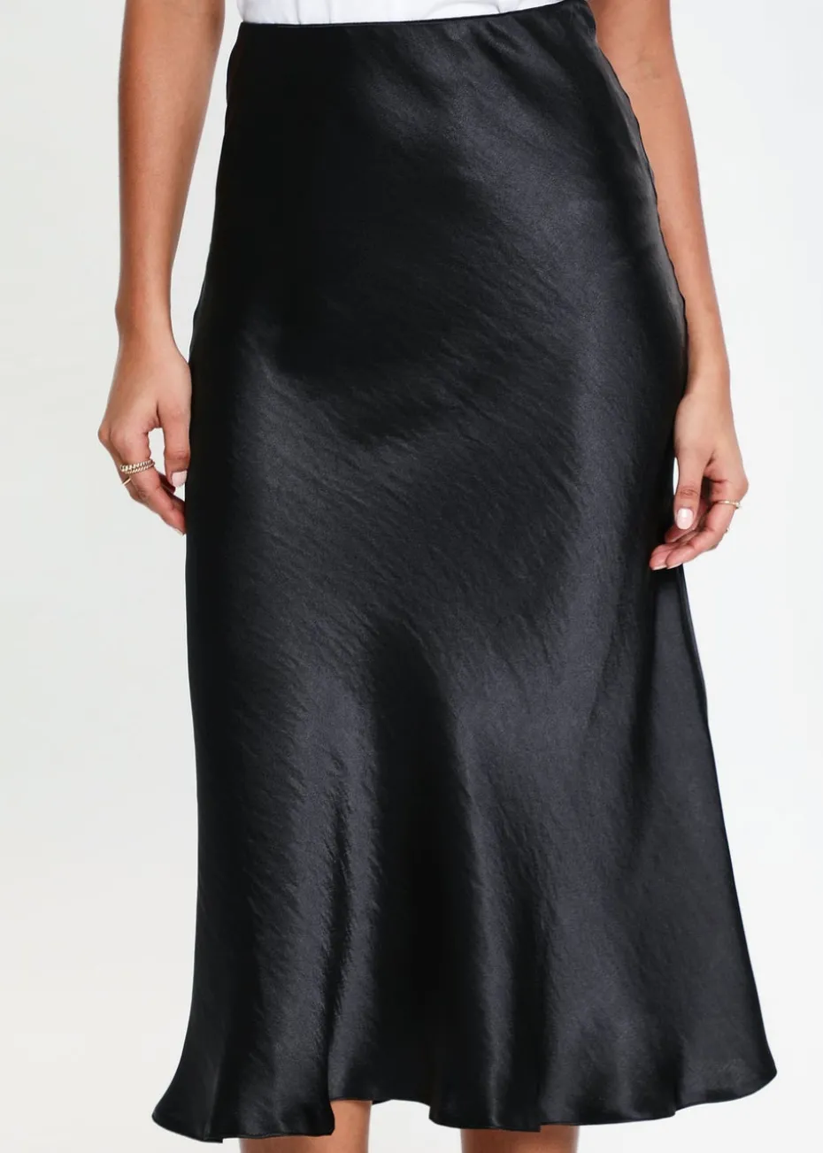 Threadbare Black Marie Satin Midi Skirt