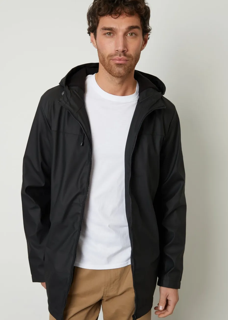 Threadbare Black Microfleece Lined Hooded Rubberised Raincoat