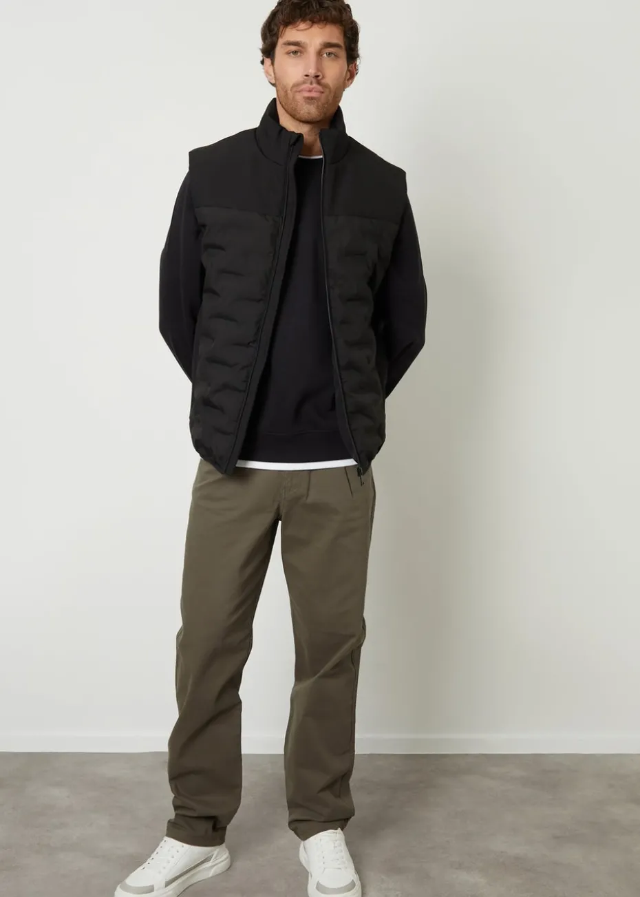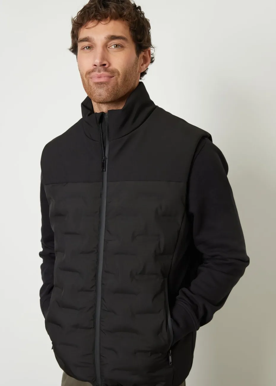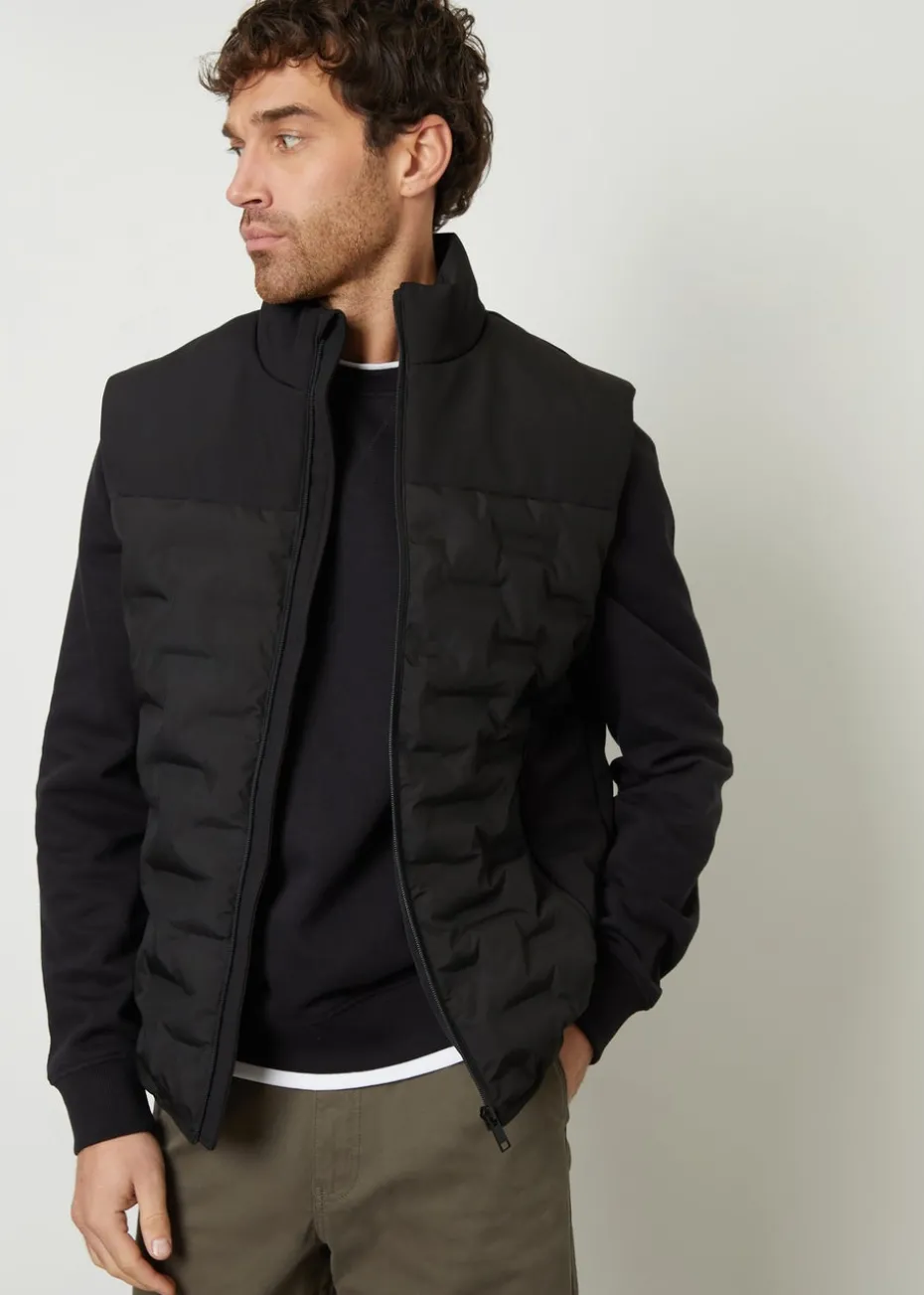 Threadbare Black Quilted Panel Funnel Neck Gilet