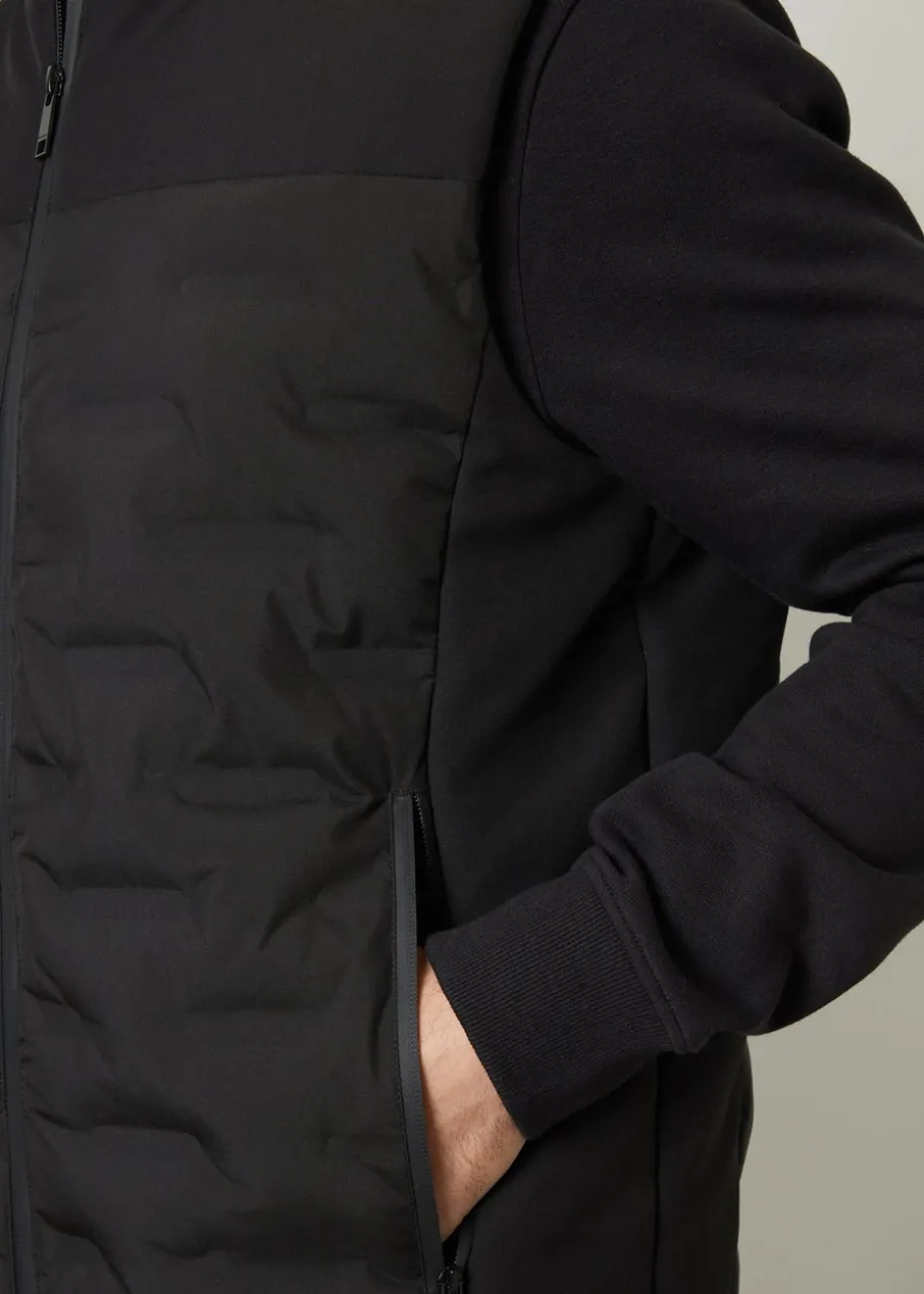 Level up your casual outfit with this quilted panel gilet from Threadbare. With broken quilting stitch panels on the front and back, this sleeveless jacket has a funnel neck with zip guard, and full zip fastening with a storm flap, all great for locking in warmth. Features two vertical microfleece lined zip-up front pockets and an inside pocket. A reliable layer in cooler months and a great option for commuting all year round.