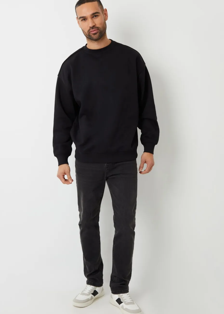 Threadbare Black Relaxed Fit Crew Neck Sweatshirt