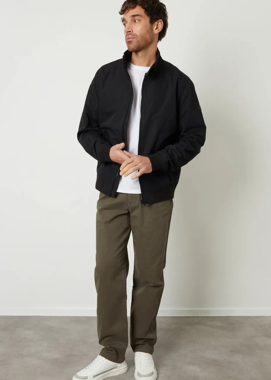 Look no further than this Harrington-style jacket from Threadbare for a smart and stylish look. This classic jacket is cut in a regular fit and has ribbed, cuffed sleeves, a ribbed hem, a funnel neck with two press stud and full zip fastening with a storm guard to keep you warm. Fully lined, this jacket is complete with two angled press stud flap pockets, and a pocket inside. Team with a simple white t-shirt, jeans, and boots for an effortless outfit.