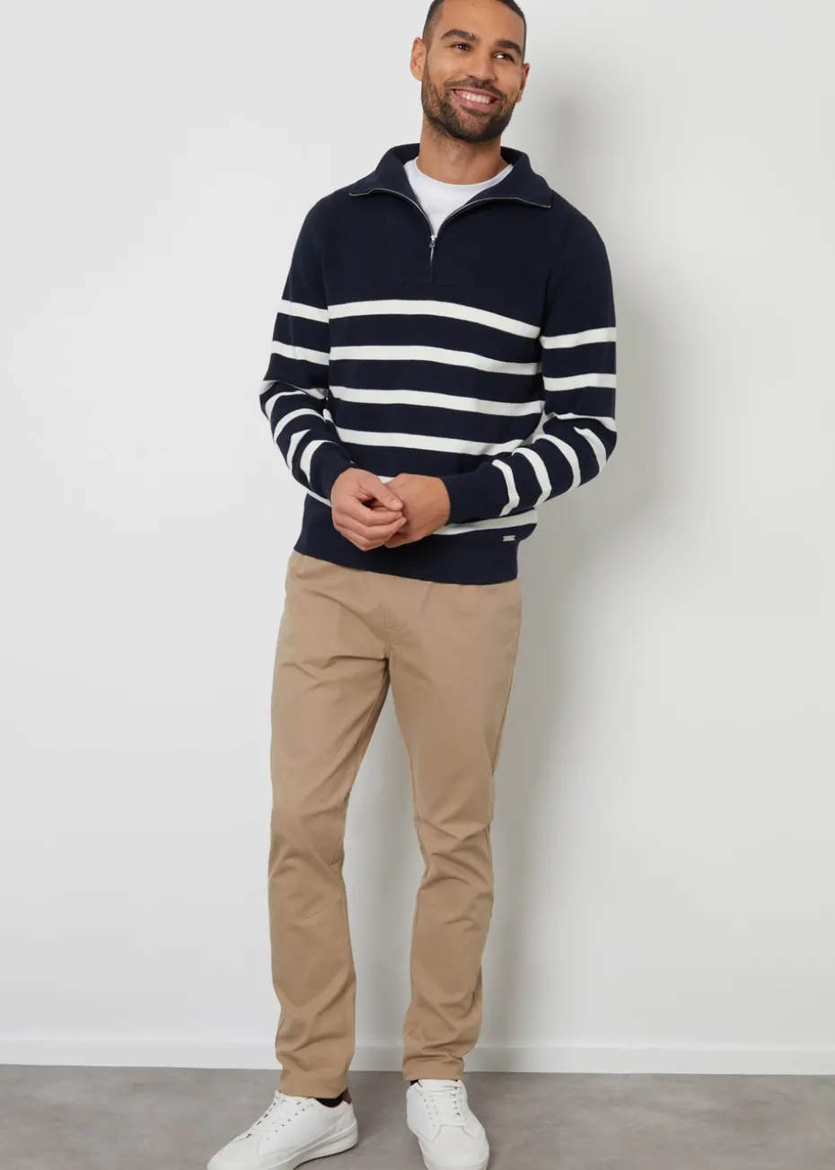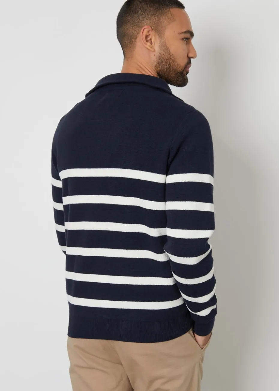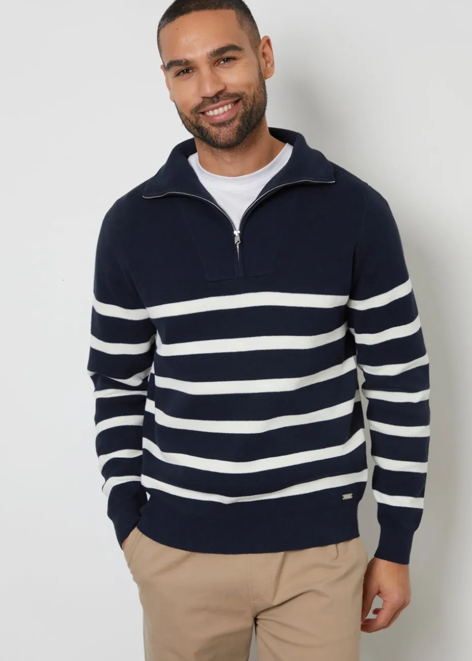 Threadbare Navy Striped Quarter Zip Knitted Jumper