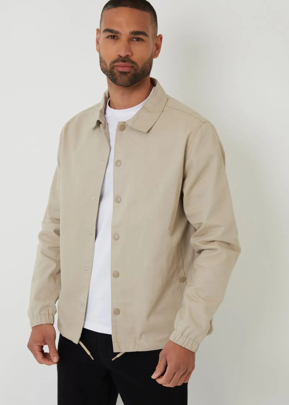 Threadbare Stone Cotton Twill Lightweight Collared Jacket