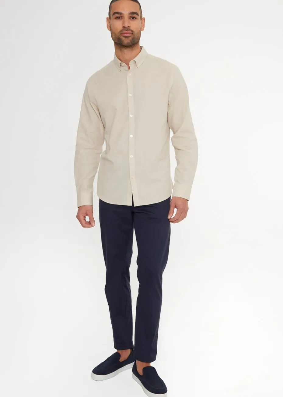 Threadbare Stone Slim Fit Linen Blend Long Sleeve Shirt