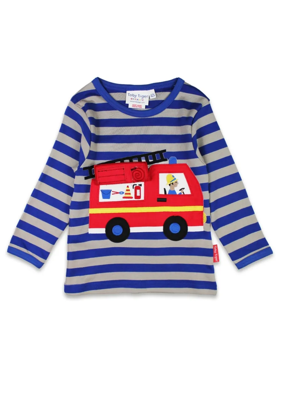 Toby Tiger Organic Blue Fire Engine Applique Long-Sleeved T-Shirt (6 months – 8 years)