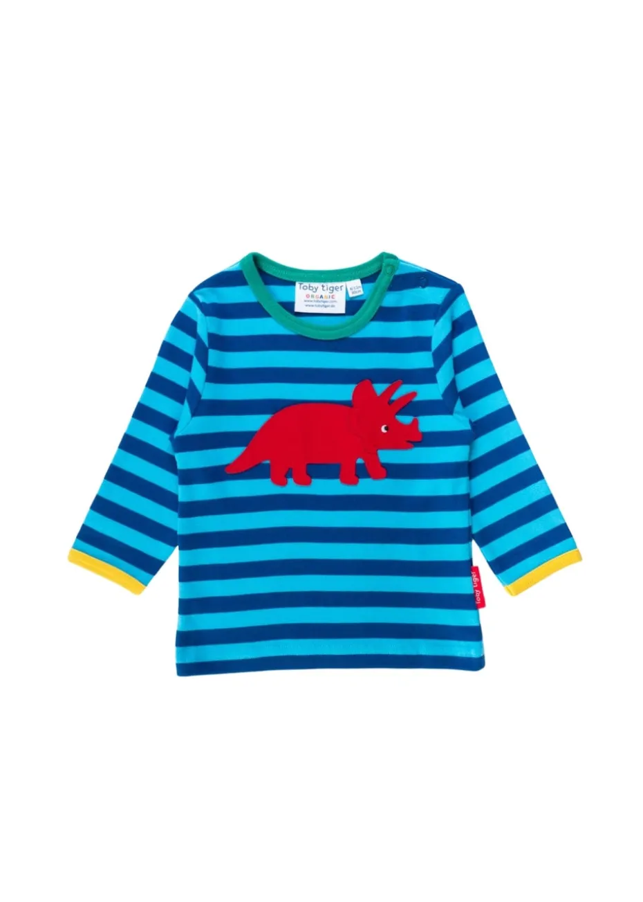 Toby Tiger Organic Blue Triceratops Applique Long-Sleeved T-Shirt (3 months – 8 years)