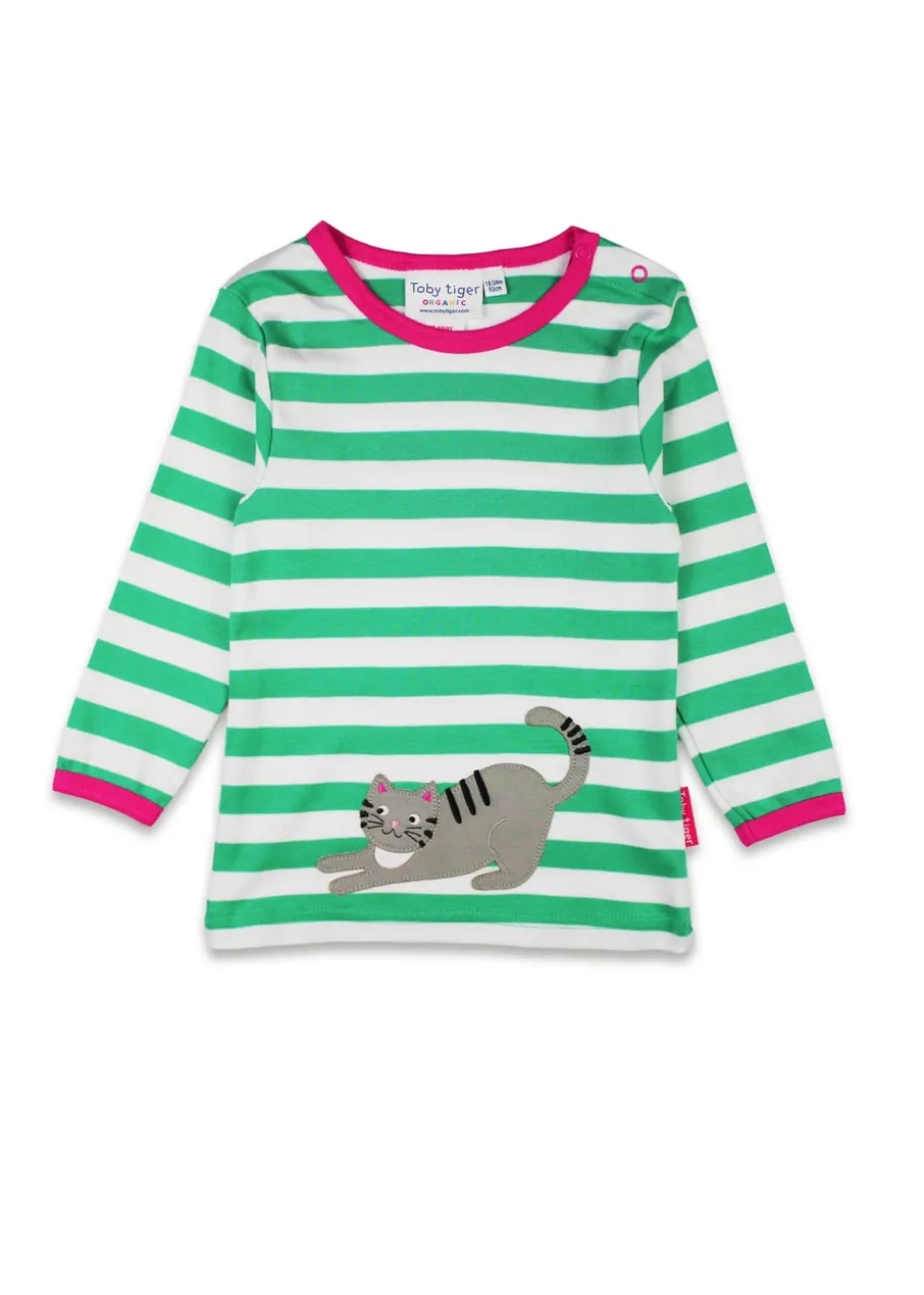 Toby Tiger Organic Green Kitten Applique Long-Sleeved T-Shirt (6 months – 8 years)