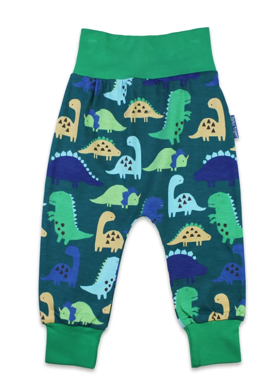 Toby Tiger Organic Green Tonal Dinosaur Print Yoga Pants (Newborn – 3 years)
