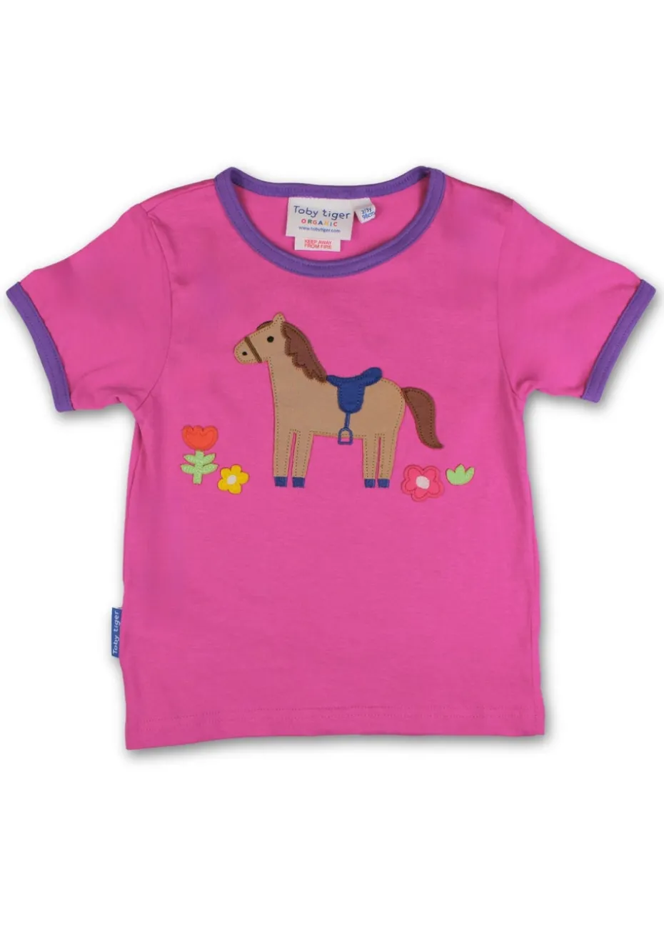 Toby Tiger Organic Pink Pony Applique T-Shirt (6 months – 8 years)