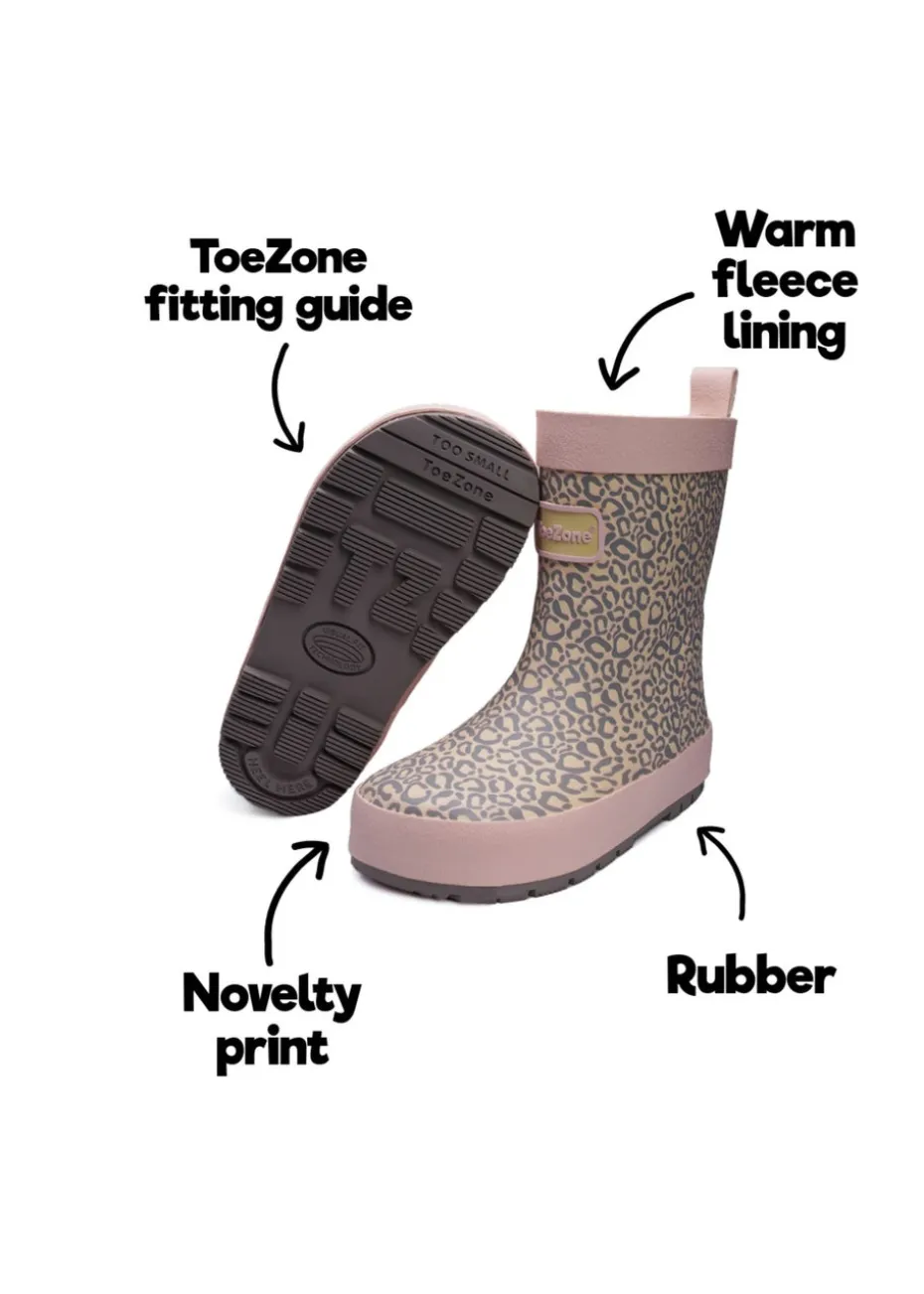 ToeZone Girls Pink Hattie Animal Print Wellies (Younger 6- Older 12)