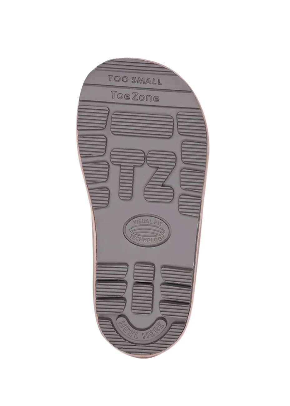 Introducing the ToeZone Hattie Pale Pink Animal Print Rain Boots – a delightful blend of style and functionality for your little fashionista. Stand out in the rain with the charming animal print, pale pink midsole, and chic grey sole. Designed for convenience, these boots feature an easy slip-on design, making it a breeze for little ones to put on and take off. The back pull tab adds an extra touch of assistance for effortless wear. The Hattie rain boot goes beyond style, offering a warm fleece lining to keep toes warm in colder months and cool in the summer. Highly weather and waterproof, these boots are ready for any seasonal adventure. Experience unbeatable comfort and a secure fit with the ToeZone fit guide. Crafted with an easy-clean and durable rubber upper, the Hattie boots are both stylish and practical. Shop now and treat your little girl to these eye-catching, fashionable rain boots – where comfort meets playful style! We advise before you buy to check out our printable fitting guide unique to ToeZone. Don’t forgot our free Drawstring bag with every pair! Welcome to ToeZone, where our passion for shoes is not just a business—it’s a family legacy. As a dedicated family-owned business, we bring you the highest standards in footwear without breaking the bank. Our commitment to quality extends to the heart of our production process, with strong relationships forming the DNA of our brand. We meticulously select factories that not only possess extraordinary craftsmanship but also align with our values. Regular visits to these factories throughout the year allow us to oversee the production journey, guaranteeing that the final product delivered to you, our cherished customer, reflects our unwavering dedication. Before making a purchase, explore our printable fitting guide, exclusive to ToeZone. We are confident that your feet will love the comfort and style that come with every pair of ToeZone shoes.