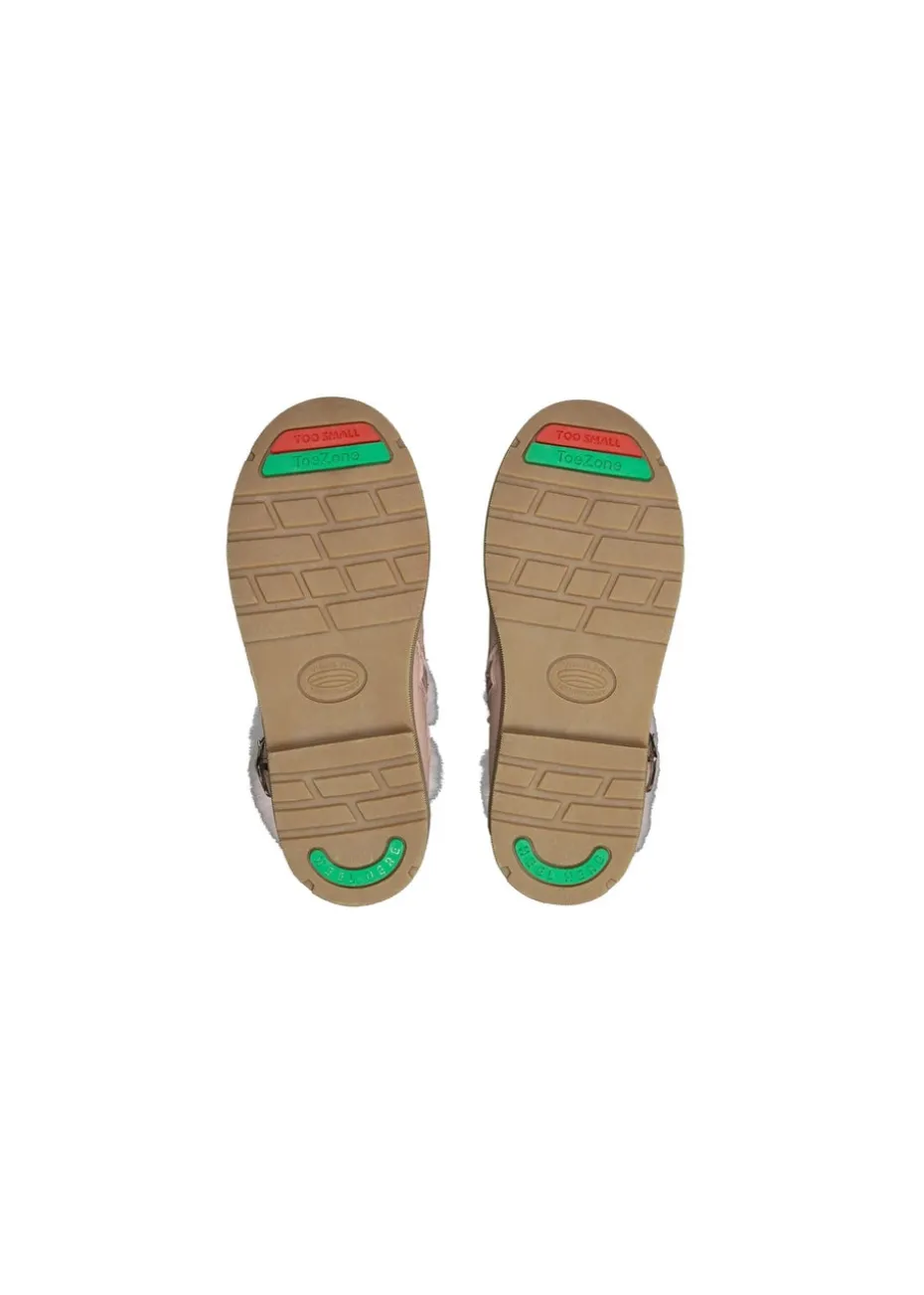 ToeZone Jo Girls’ Pink Leather & Suede Fur Boot are packed with features to ensure comfort, durability and style, these shoes are designed to be extraordinary. Here’s what makes them special: Scuff Resistant: Durable material that keeps the shoes looking new for longer. Faux Fur Collar: Provides extra warmth and comfort while adding a stylish touch. Heart Buckle: Offers adjustability and a cute decorative element. Suede Leather Upper: Ensures durability, comfort, and breathability. Heart Print: Adds playful, visually appealing design for self-expression. Side Zip: Easy to adjust for a secure fit. Non-Slip: Ensures stability on various surfaces. Non-Marking: Prevents marks on floors, keeping them clean. Man-Made Outsole: Durable and provides excellent traction. Textile Linings: Environmentally friendly and keeps the shoes fresher for longer. Material Composition: Upper: Leather & Suede Linings: Textiles Sole: Man-Made Materials Additional Features: Check out the LEFT and RIGHT print on the insocks – super helpful for children learning to put their shoes on correctly. We recommend using our printable fitting guide unique to ToeZone before making a purchase to ensure the perfect fit.