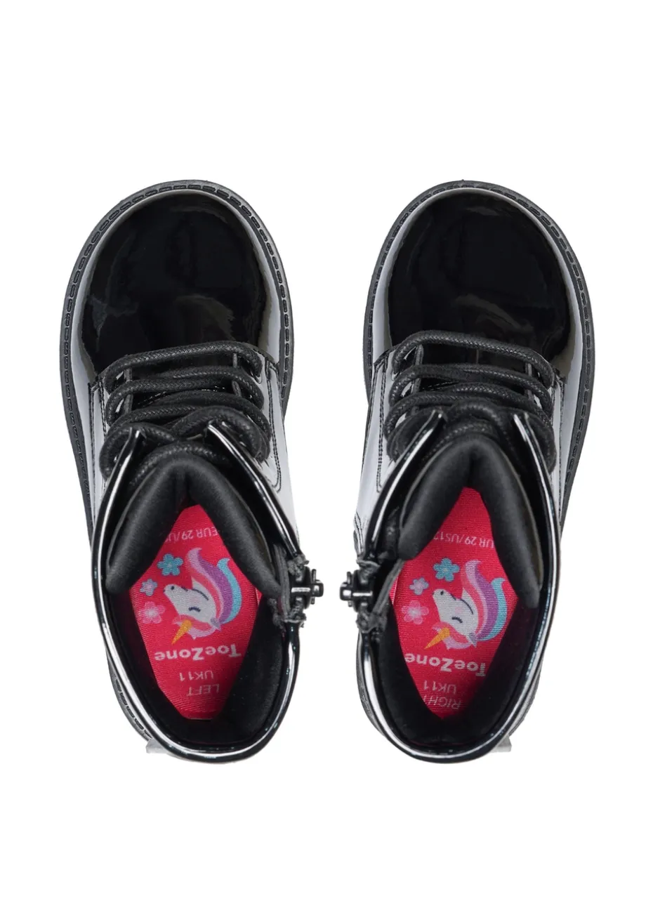 ToeZone Holly Black Patent Leather Unicorn Boot (Younger 8 – Older 2)